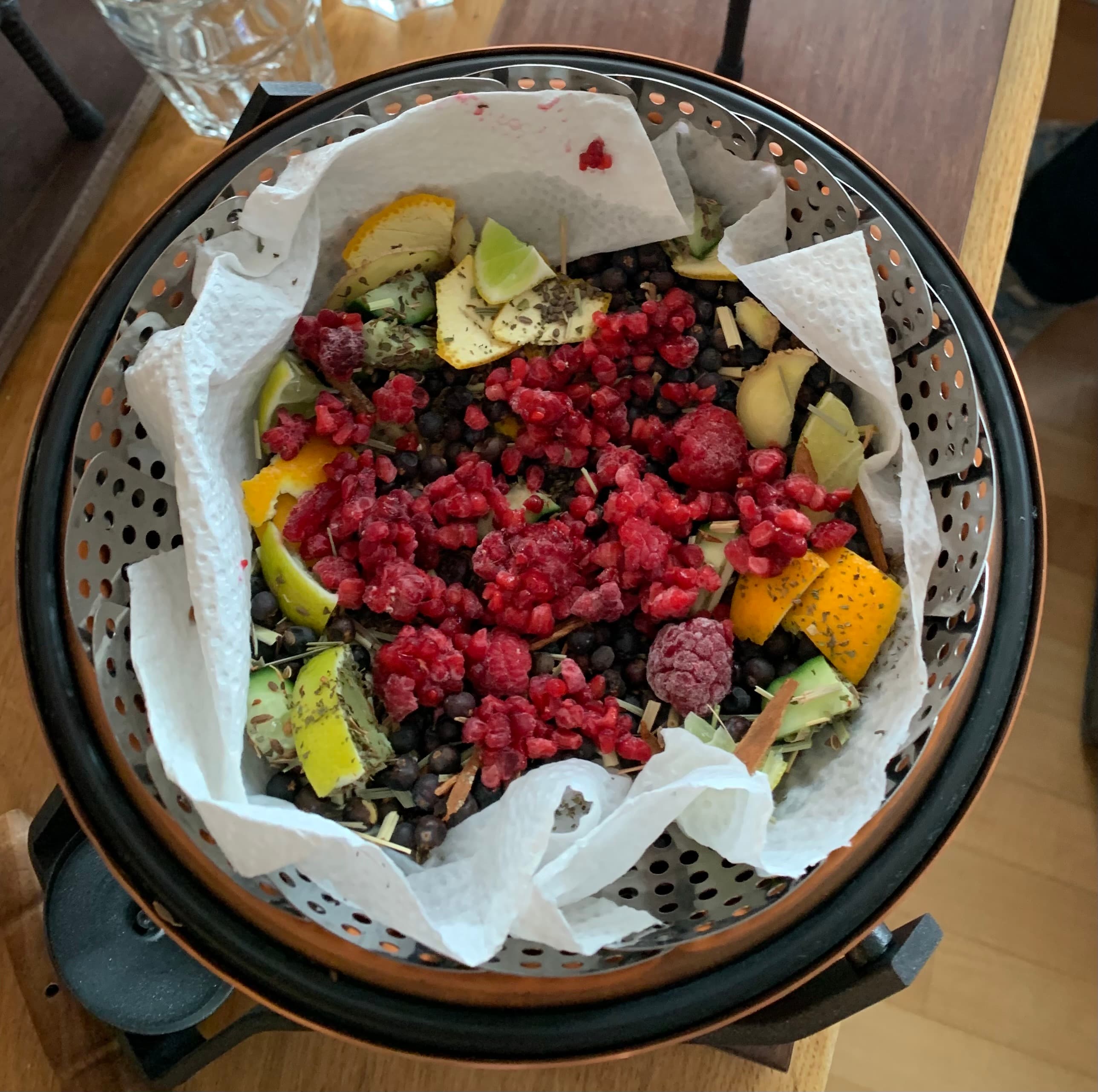 Im Anschluß folgt der erste Brennlauf. Rezepte für mögliche Vergeistung des Alkohols werden gestellt. Es kann aber auch eine Eigenkreation hergestellt werden. Das Destillat wird auf den Alkoholgehalt getestet und auf die gewünschte Trinkstärke reduziert, bevor es in die vorbereiteten Flaschen abgefüllt wird.