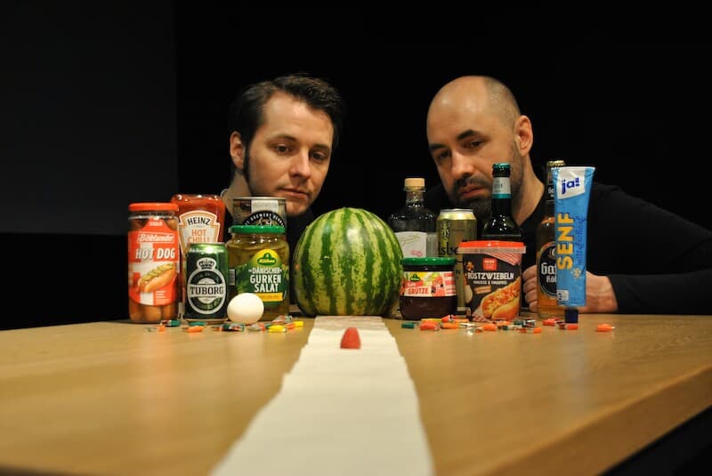 Zum Leben erweckt werden die Objekte durch zwei Schauspieler, die in ihrer Küche eigentlich Hot Dogs machen wollten und nun aus Versehen Hamlet spielen. Was ist Wahn, was ist Wirklichkeit? Wo liegen Verantwortung und Schuld im Handeln oder Nicht-Handeln? Sein oder Nicht-Sein? Hamlet eben! Ziemlich ernst, aber auch ziemlich komisch. Und tatsächlich: Man kann mit einer Flasche Bier Mitleid empfinden.