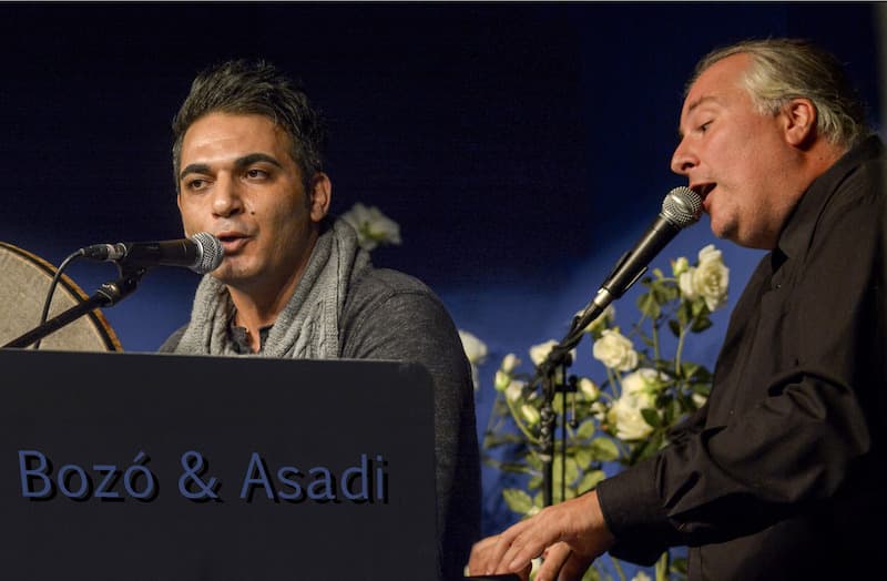 Hesam Asadi und Mathias Bozó lernten sich beim Weltmusik-Trio Edelholz kennen und vertiefen seitdem zu zweit den musikalischen Kulturaustausch mit Herz und Niveau. Das deutsch-iranische Duo verknüpft östliche und westliche Musik mit Anklängen von Klassik und Chanson, was beide mit Virtuosität und viel Emotion füllen und zelebrieren. Asadi (Kniegeige, Perc., Gesang) studierte in Tehran Musik und wurde dort wegen Veröffentlichung eines systemkritischen Musikvideos inhaftiert. Danach gelang es ihm nach langer Flucht, in Deutschland Fuß zu fassen. Er fand in Bozó (Piano, Perc., Gesang) einen kongenialen Spielpartner. Ihr musikalischer Austausch ist ein Reigen beseelter Instrumental- und Gesangsstücke, und eine gegenseitige kulturelle Integration auf Augenhöhe: virtuos, harmonisch und ergreifend.
