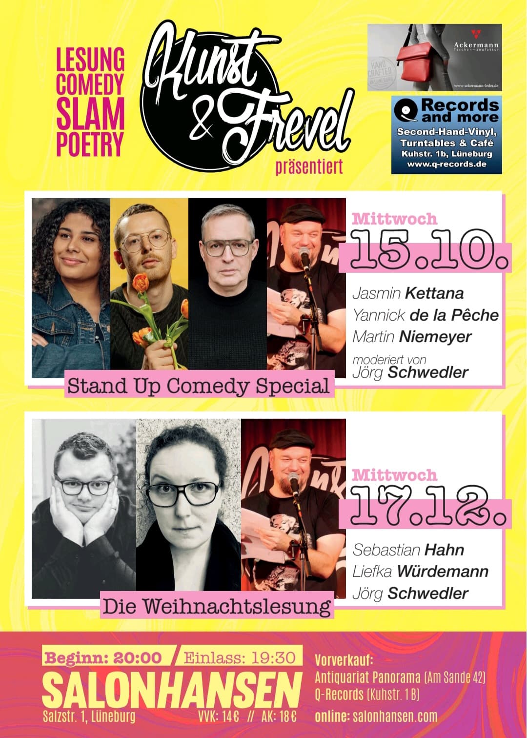 Am 15. Oktober heißt es im Salon Hansen Lüneburg: Bühne frei für einen besonderen Abend voller Humor, Scharfsinn und absurder Geschichten. Das Comedy-Special von „Kunst & Frevel“ bringt gleich mehrere starke Stimmen der nordeutschendeutschen Stand-up-Szene auf die Bühne.