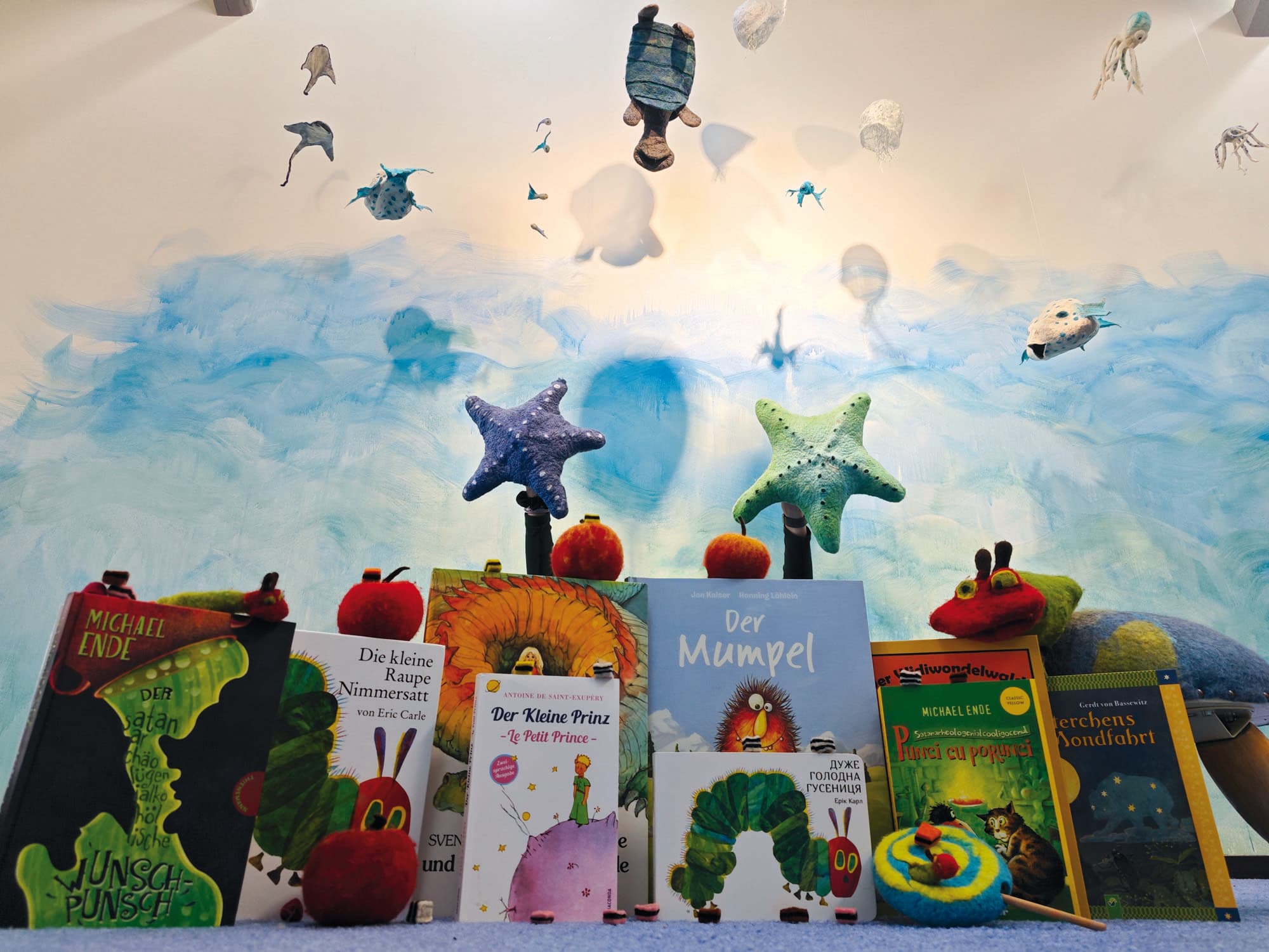 Die Ausstellung „KiBuFi – Kinderbuch trifft Filz“ hat Geschichten ins Dachgeschoss der Filzwelt geholt – z.B. von Drachen und Trollen, einem kleinen Prinzen, einer Fee, von einer hungrigen Raupe, mutigen Tieren und geheimen Mumpeln … Zur Geschichtenzeit tauchen wir gemeinsam in Bücher ein, lesen Euch vor und erzählen – manchmal auch in verschiedenen Sprachen. Geht mit uns auf Fantasiereise!