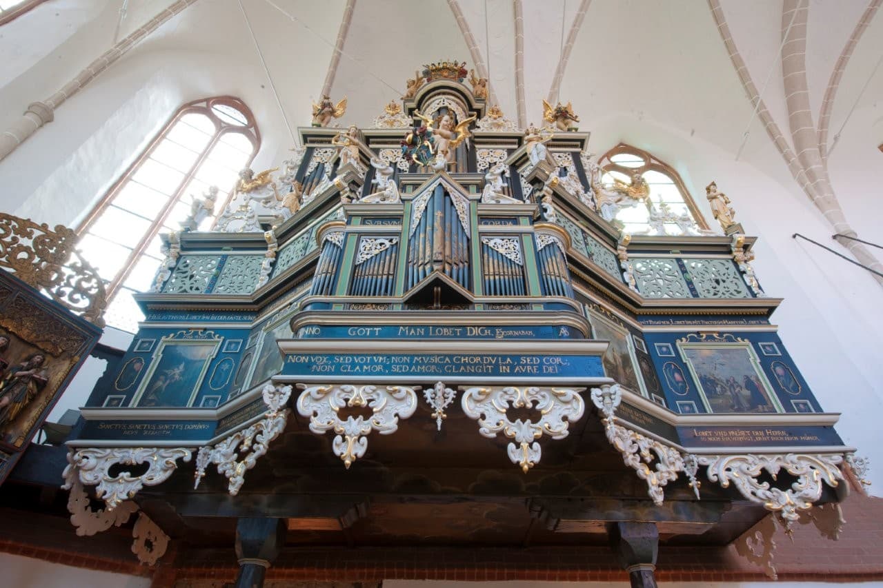 Der reich verzierte Orgelprospekt von 1645 mit seinen Bildern, Inschriften und Schnitzereien gehört zu den ältesten Orgelfassaden im norddeutschen Raum. Bilder, Texte, Orgelmusik und Gesang sind Ausdruck des protestantischen Glaubensverständnisses und Gotteslobs. Ergänzt wird die Führung mit Orgelmusik.