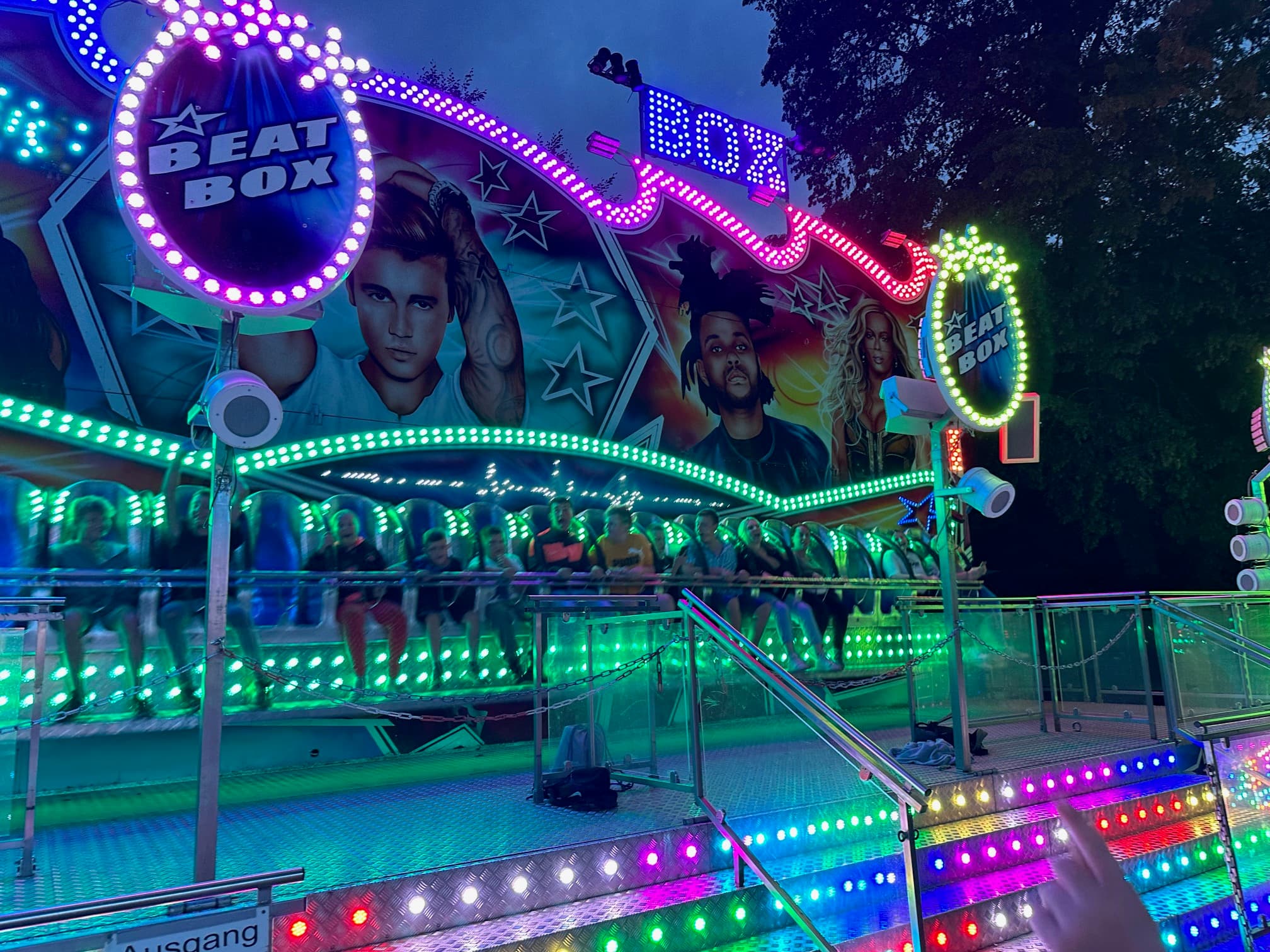 Samstagnachmittag Festumzug und Ehrenmeldung auf dem Marktplatz, abends Disco im Festzelt