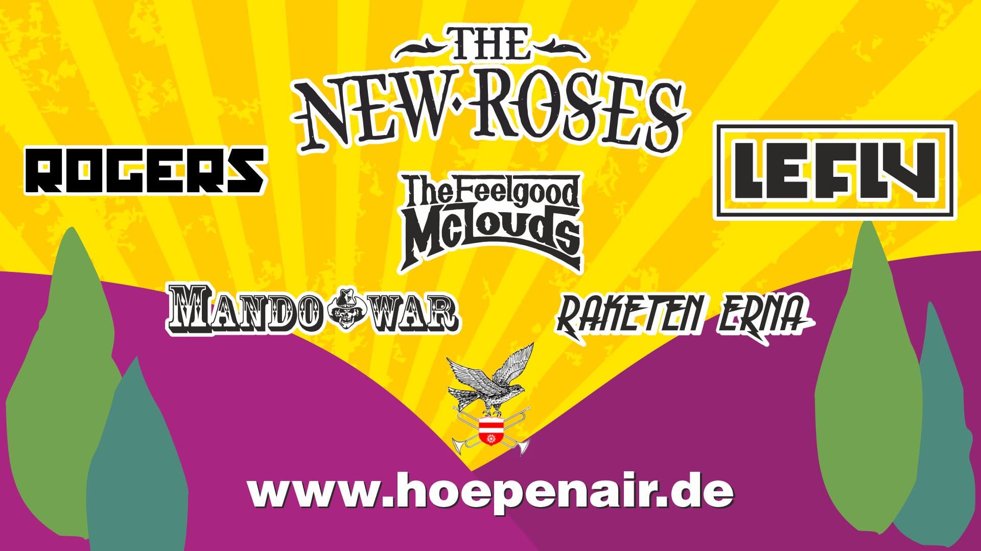 Im kommenden Jahr startet das HöpenAir mit einer Institution in Sachen Rockmusik für Kinder: Raketen Erna. Mit Rogers kommt eine Band in die Heide, deren letztes Album hoch in die deutschen Albumcharts stürmte. Außerdem feiert mit The New Roses Deutschlands bester neuer Rockact Bühnenpremiere in Schneverdingen. Die Band Mandowar wird zeigen, dass kleine Instrumente große Songs und größten Spass bedeuten können. Die gefeierte Irish Folk Punk Formation The Feelgood McLouds und die beliebte Ska Punk Band Le Fly komplettieren das diesjährige Line-Up, das darüber hinaus ein interessantes Rahmenprogramm mit vielen Überraschungen sowie ein breites kulinarisches Angebot bietet.