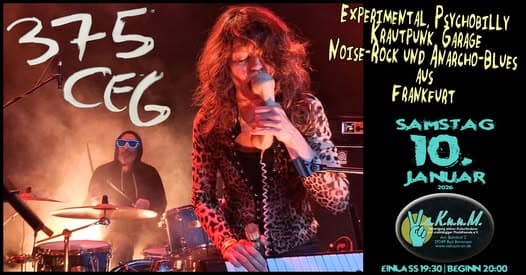 375 CEG sind Christina am expressiven Gesang, mit ihrer brennenden Vermona Orgel, Synthesizer und Trompete, Matthias an der Gitarre und Gesang, der fantastische Gerd am Schlagzeug und Dietrich am Theremin und Saxophon.