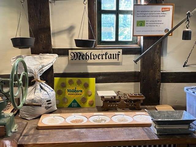 Für das leibliche Wohl wird im Kaminzimmer gesorgt. Frisch gebackenes Brot und Schrot aus der Mühle sind erhältlich.