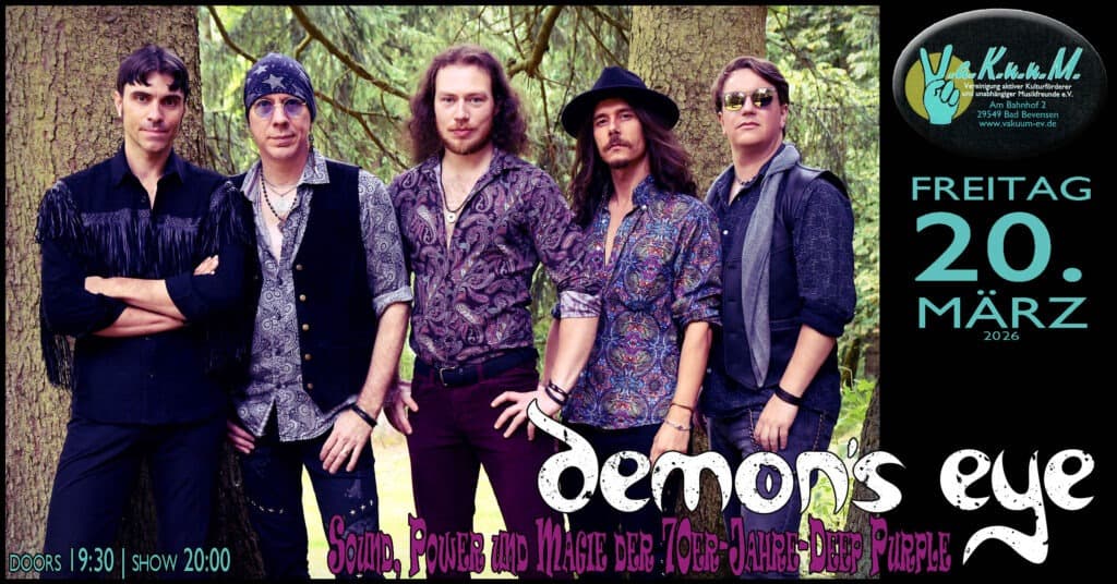 Wenn es um Deep Purple geht, gibt es eine Tribute-Band, die sich den legendären Songs dieses Hardrock-Flaggschiffs mit unvergleichlicher Hingabe und Authenzität widmet: DEMON’S EYE !