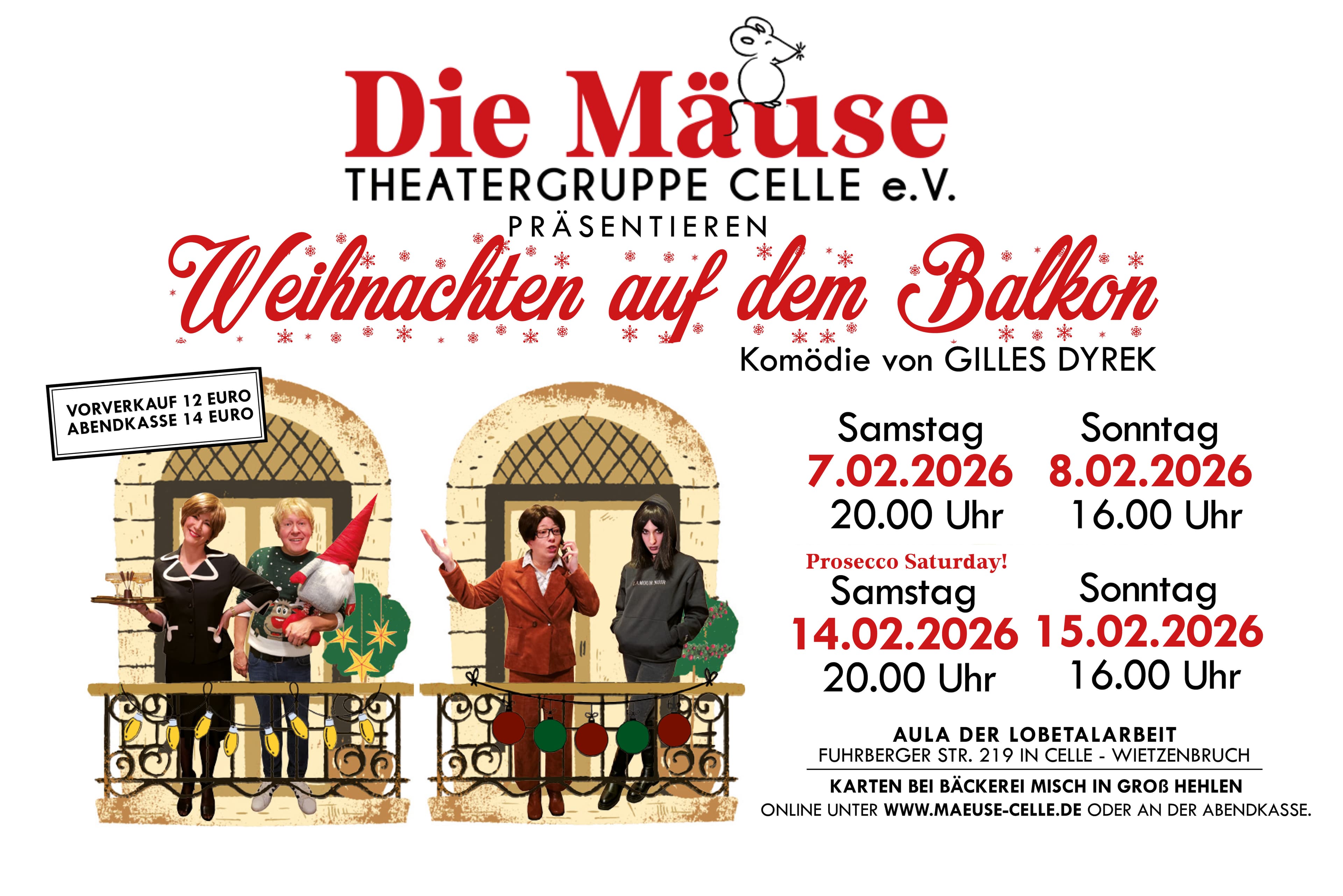 Die Theatergruppe "Die Mäuse" Celle e.V. spielen die Komödie „Weihnachten auf dem Balkon“ von Gilles Dyrek