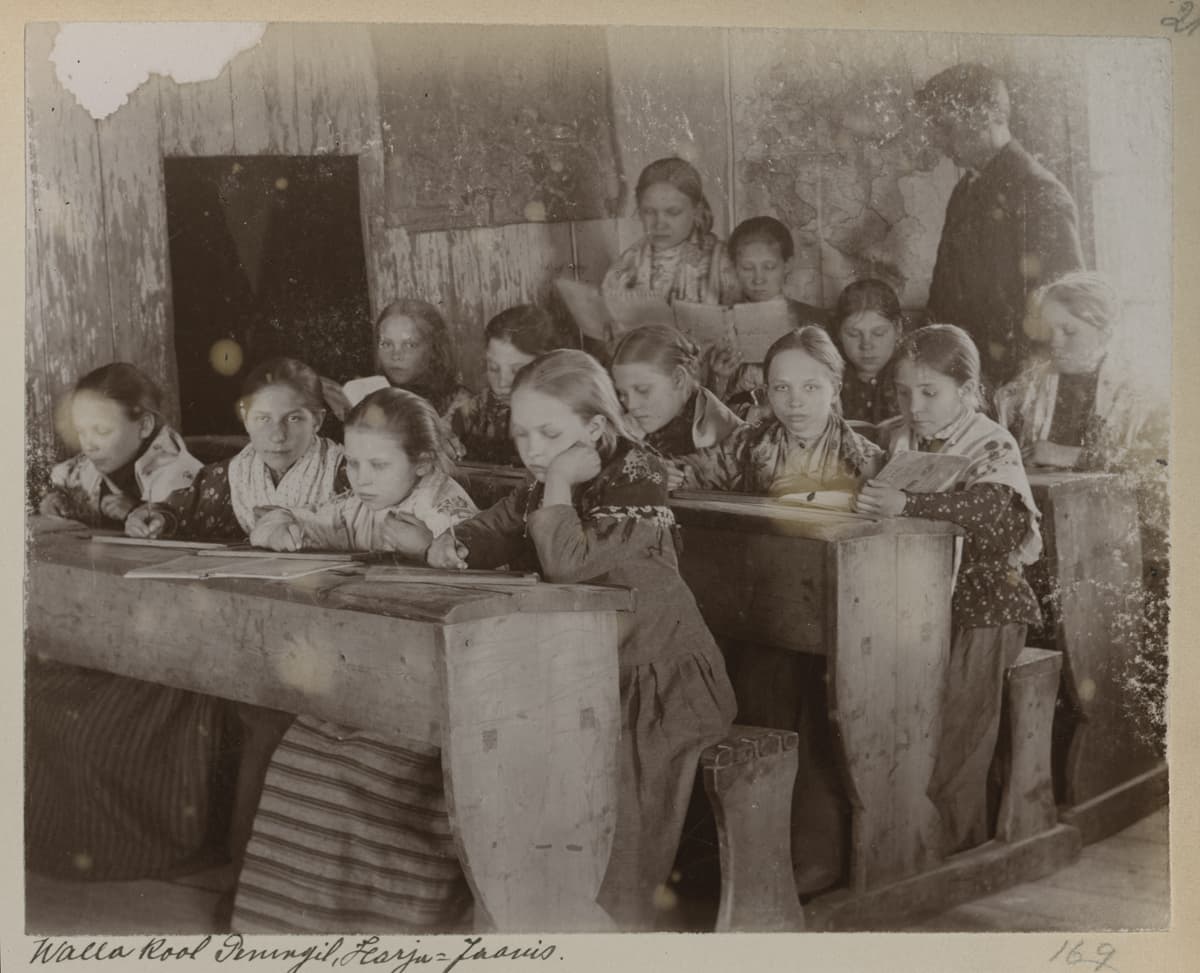 ©Heinrich Tiidermann, Album Estonica, Kinder in der Gemeindeschule in Peningil, Harju-Jaaniis, ca. 1898 © public domain.