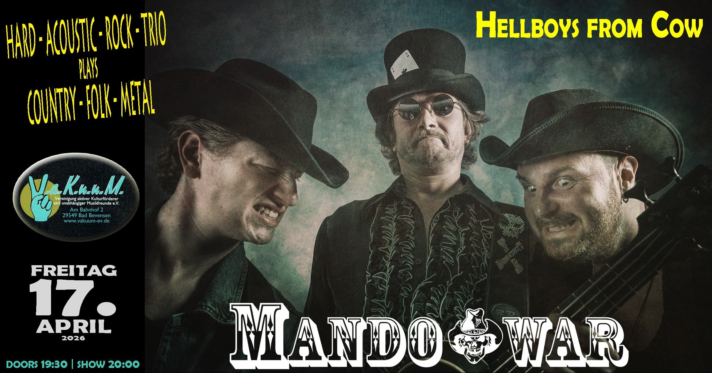 „Du siehst nur drei Leute mit kleinen Instrumenten auf der Bühne, aber Du hörst ‘König der Löwen‘“ – so beschreibt Sänger Nils Hofmann gern das Erfolgsrezept von MANDOWAR. Nur mit Mandoline, Gitarre und Ukulelen-Bass tritt er mit seinen zwei Bandkollegen auf und interpretiert große Rock- und Metalsongs.