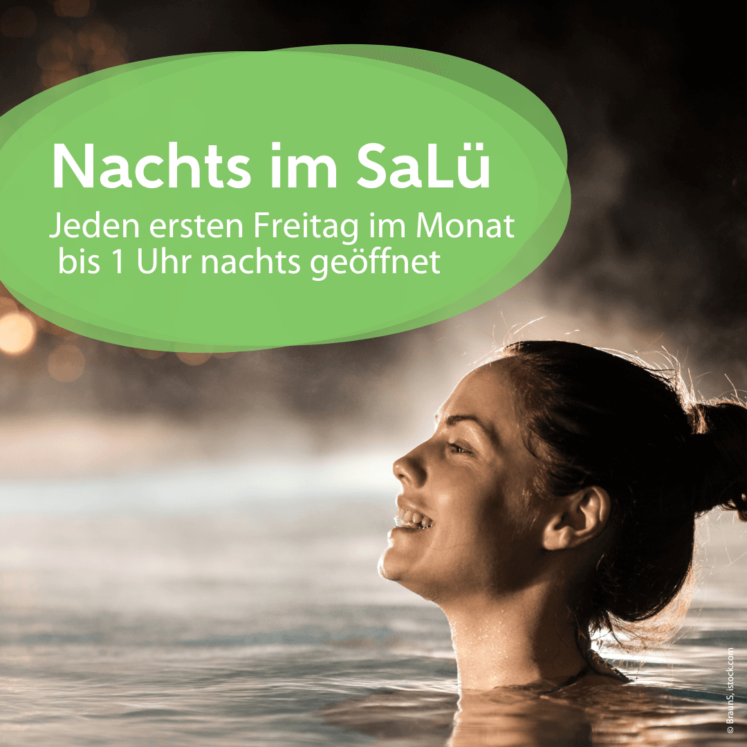 Am 6. März öffnet das SaLü bis 1:00 Uhr nachts. Saunieren in der Siederei oder schwimmen und rutschen im Wasserviertel bis nach Mitternacht.