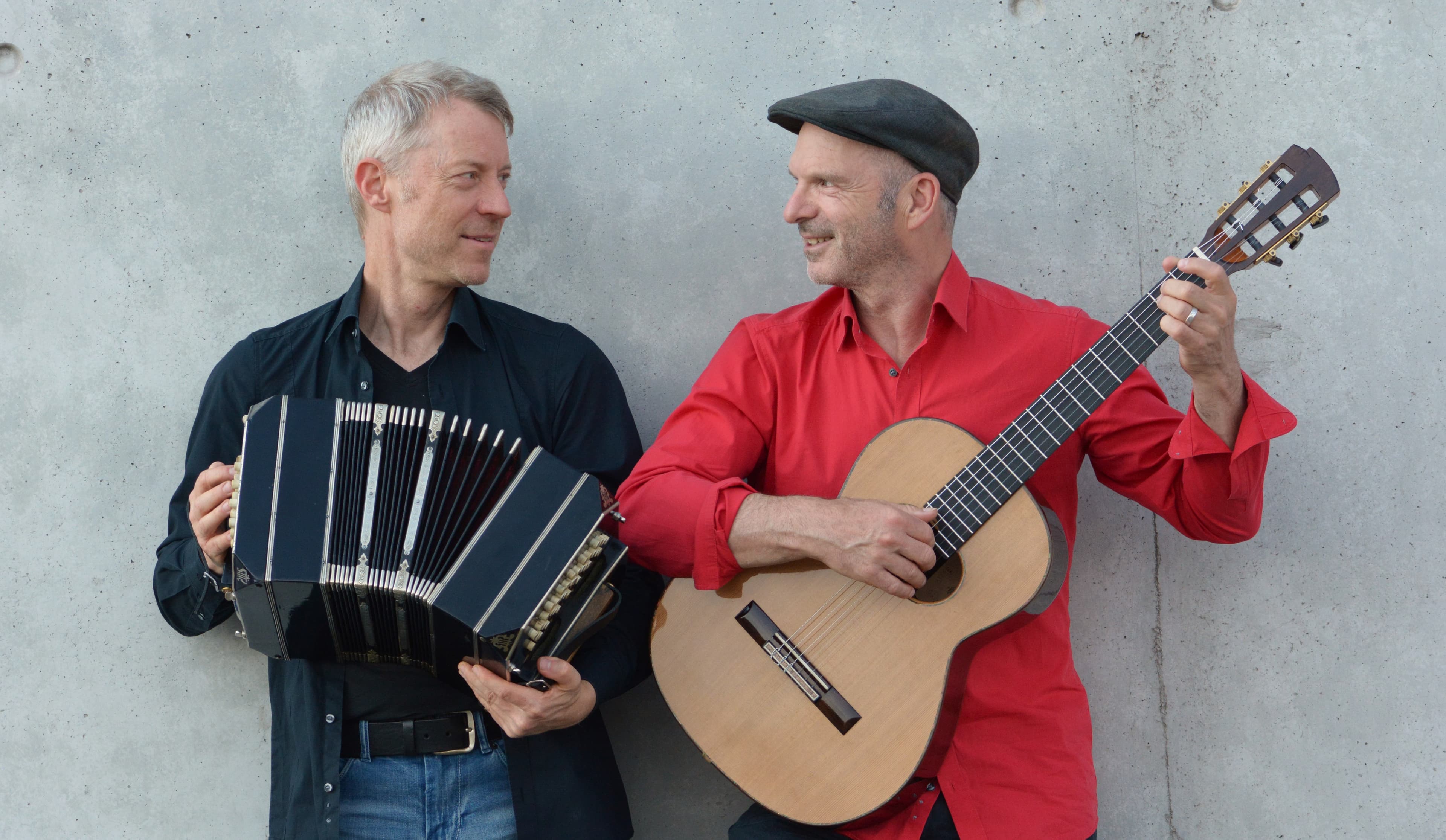 Aves de paso (= Zugvögel), das sind Hendrik Leßmann (Bandoneon) und Miguel Wolf (Gesang und Gitarre). Im Tango sind sie sich begegnet und seitdem fliegen sie zusammen.