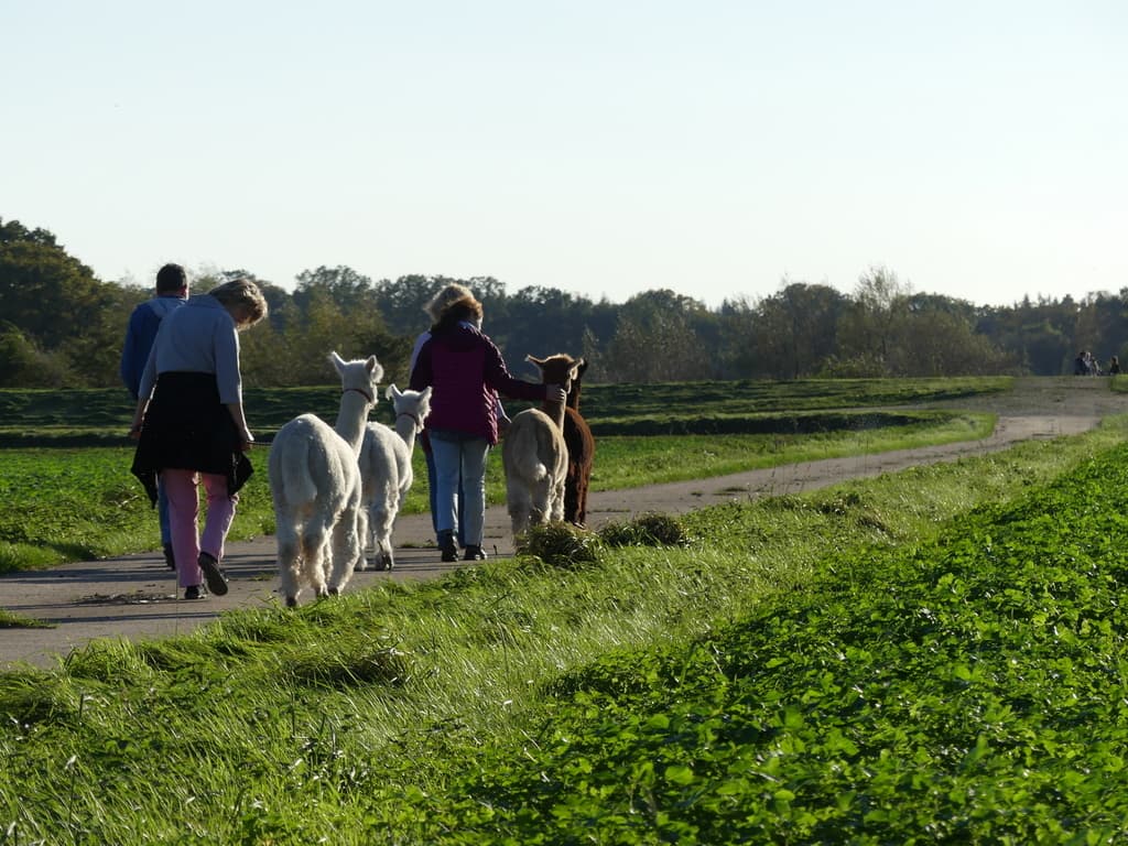 Zu sich kommen und durchatmen: Mit dem Alpaka an der Leine ist es ganz einfach, die Natur wahrzunehmen. Der Kontakt zum Tier und die wohltuende Bewegung an der frischen Luft tun ihr Übriges. Genießen und Wandern! Geeignet für vitale Menschen von 6-100 Jahren