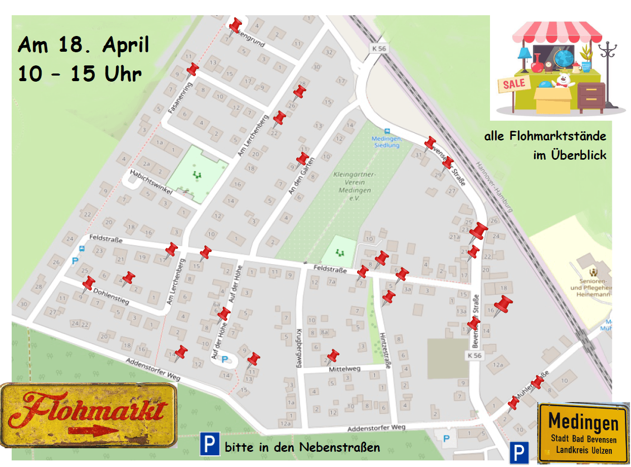Stände findet ihr in der Bevenser Straße, der Feldstraße, „An den Gärten“, am Lerchenberg und mehr...