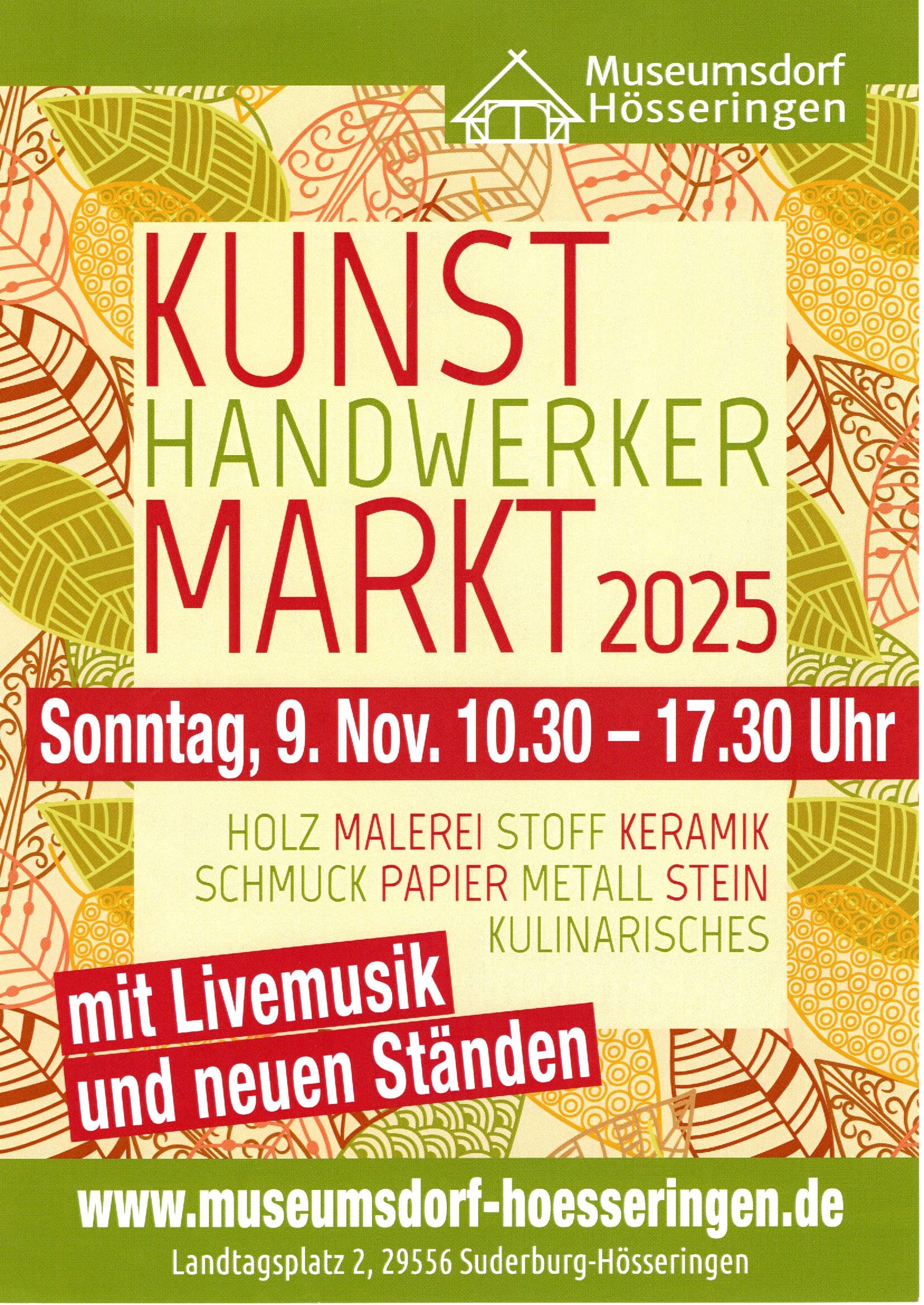 SuderburgDas Museumsdorf stimmt Sie auf die Herbstzeit ein. Regionale Kunsthandwerker überraschen mit ihren kreativen und dekorativen Produkten. Für musikalische Begleitung auf dem Gelände und in den Gebäuden sorgt das Duo Terraneola. Eine große Tombola sammelt Spenden für die Erweiterung und Neugestaltung …