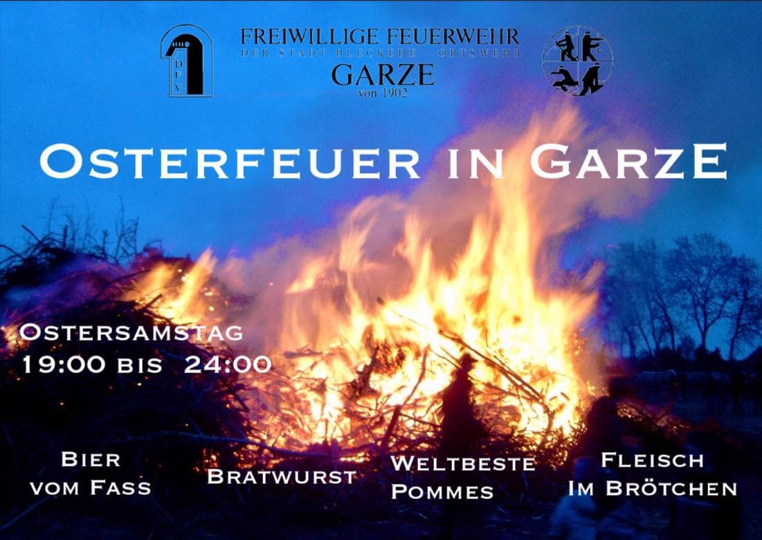 BleckedeOsterfeuer in Garze Bratwurst, Fleisch im Brötchen, Bier vom Fass, Weltbeste Pommes