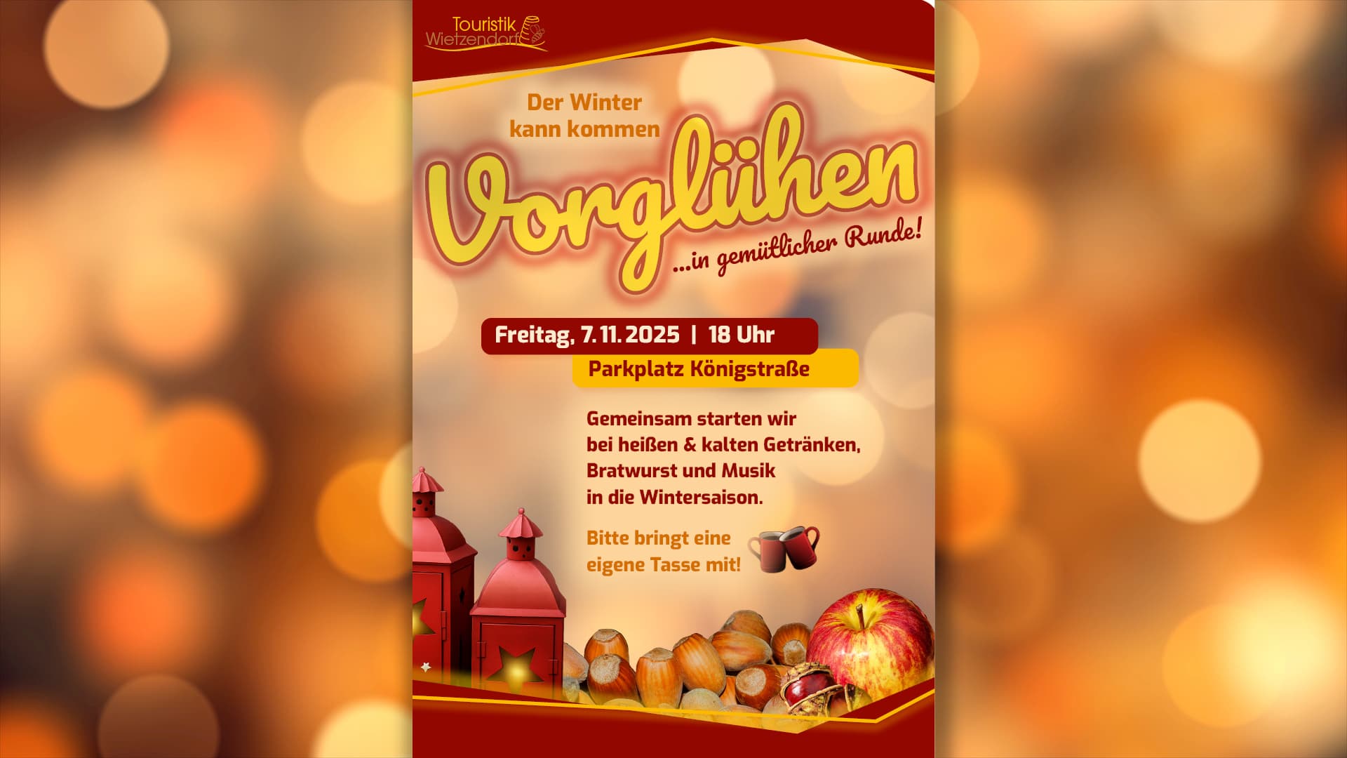 WietzendorfGemütlicher Winterauftakt in Wietzendorf Am Freitag, den 7. November 2025, lädt die Wietzendorf Touristik zu einem stimmungsvollen Start in die Wintersaison ein. Ab 18 Uhr erwartet Besucherinnen und Besucher auf dem Parkplatz in der Königstraße gegenüber der Wietzendorf Touristik ein geselliges Be…