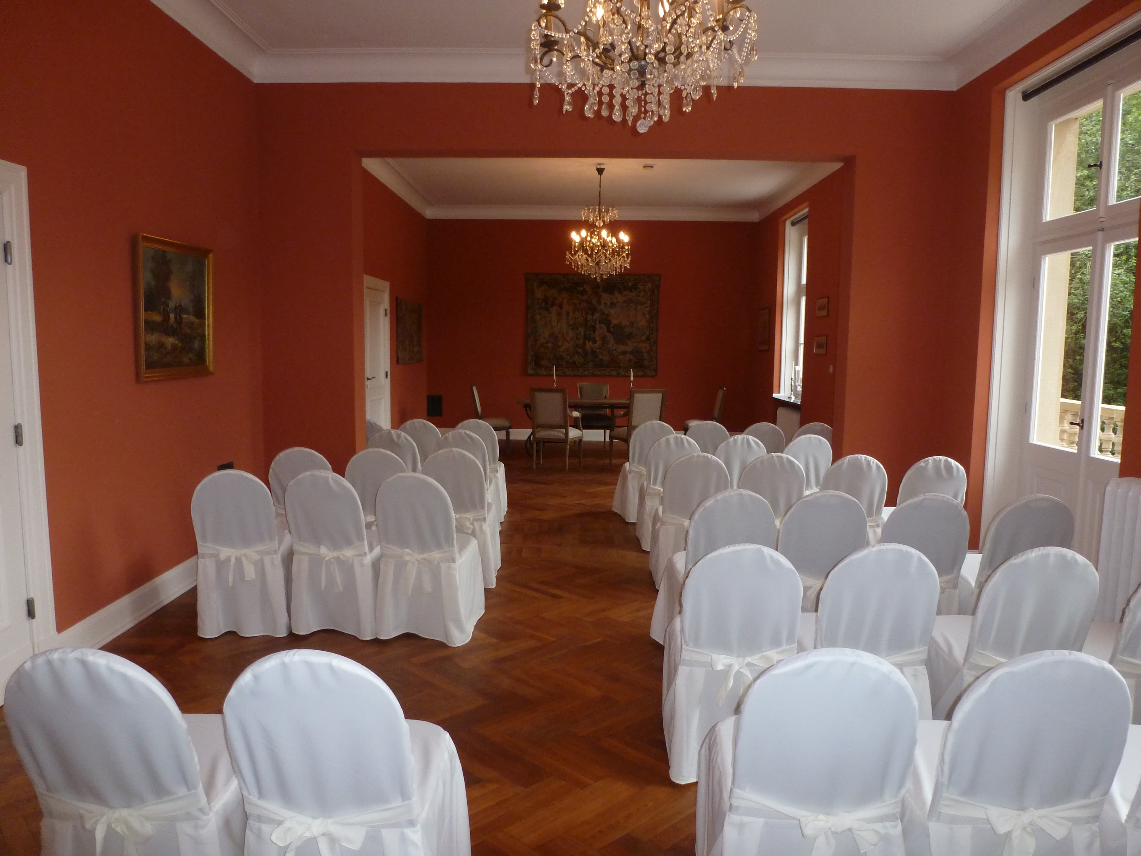 Eine Heirat im Trauzimmer des Schlosses bietet bis zu 80 Sitzmöglichkeiten, eine Außentrauung am Barock-Schlossteich kann bis zu 300 Personen umfassen.