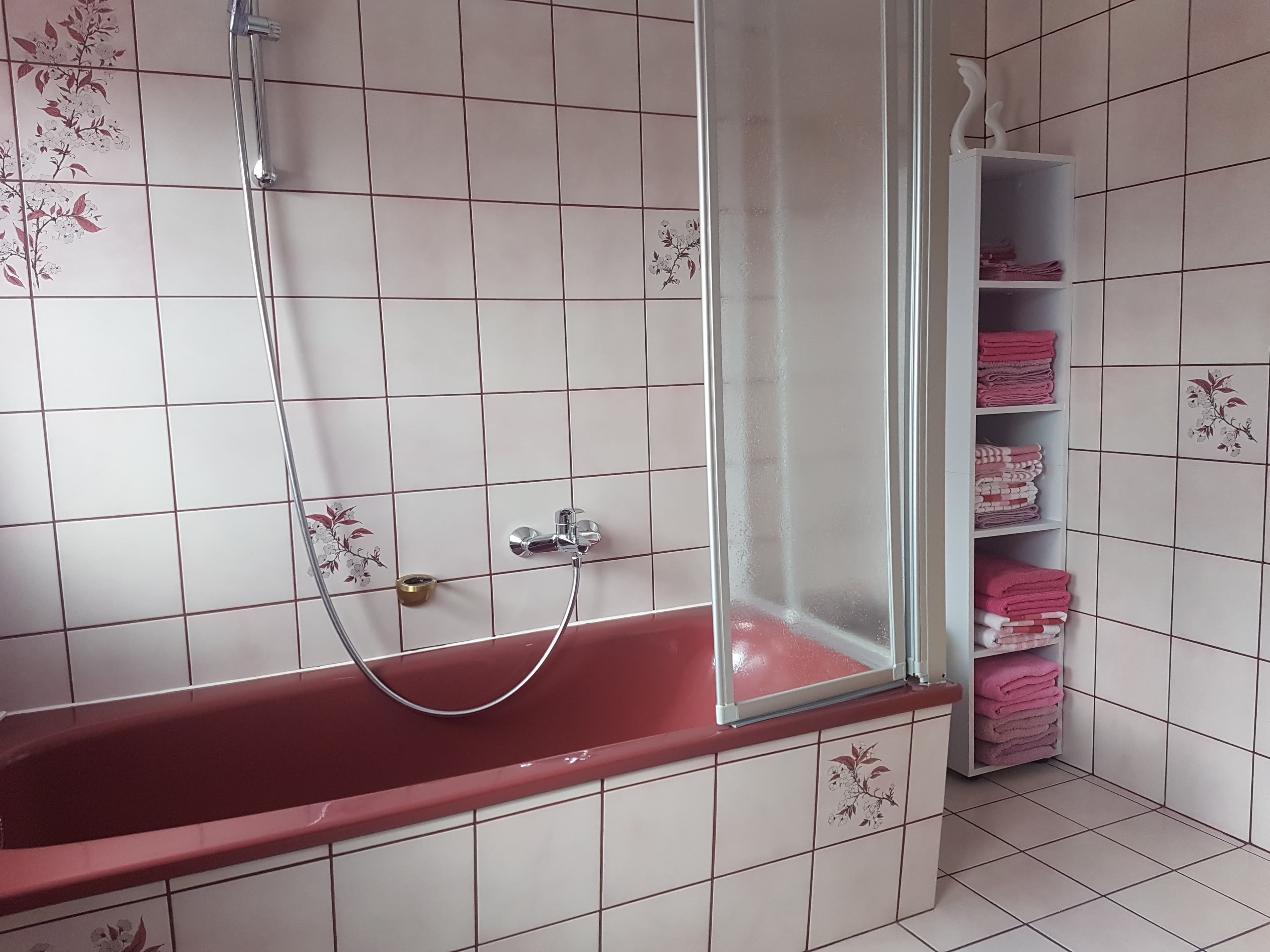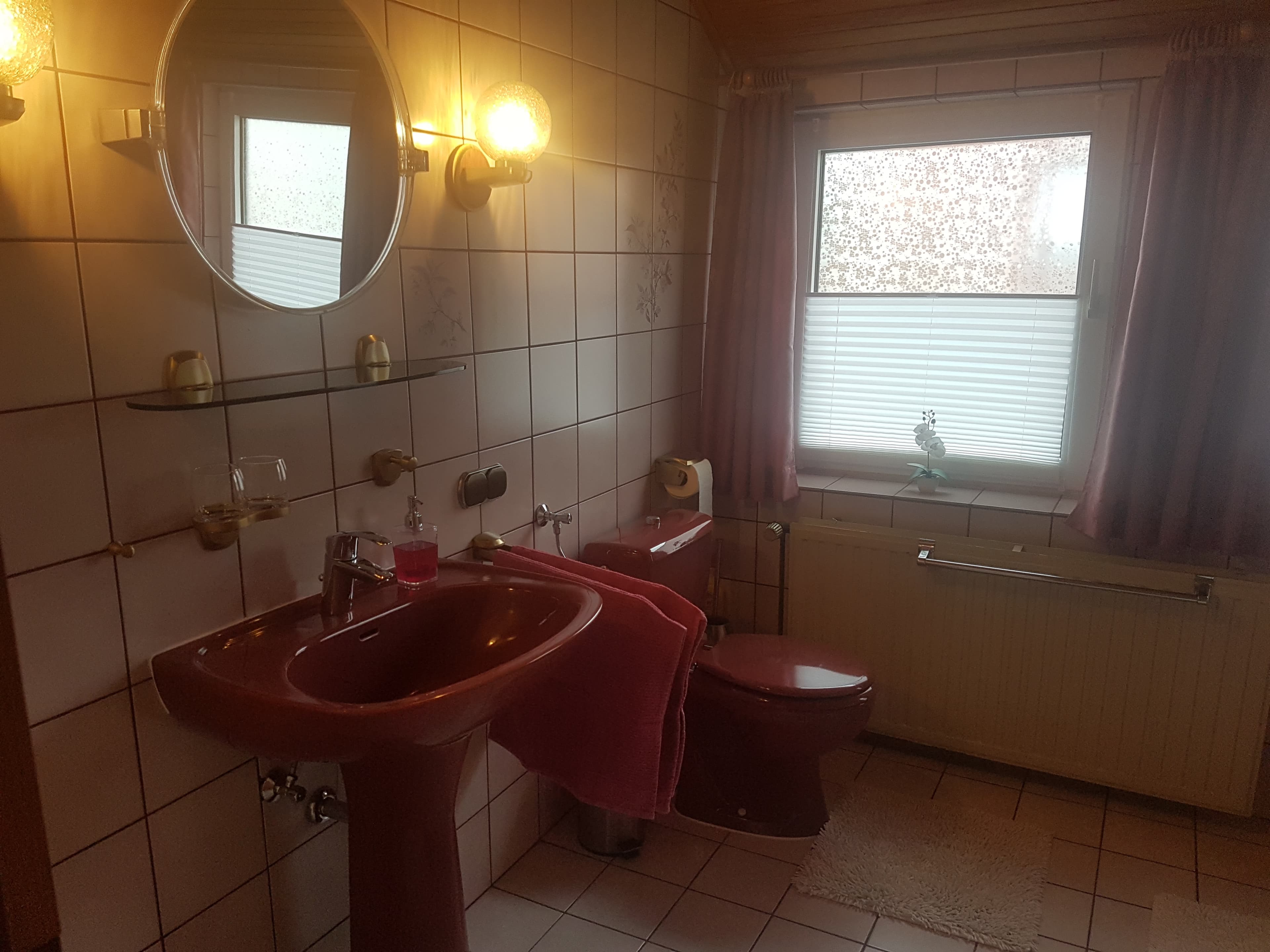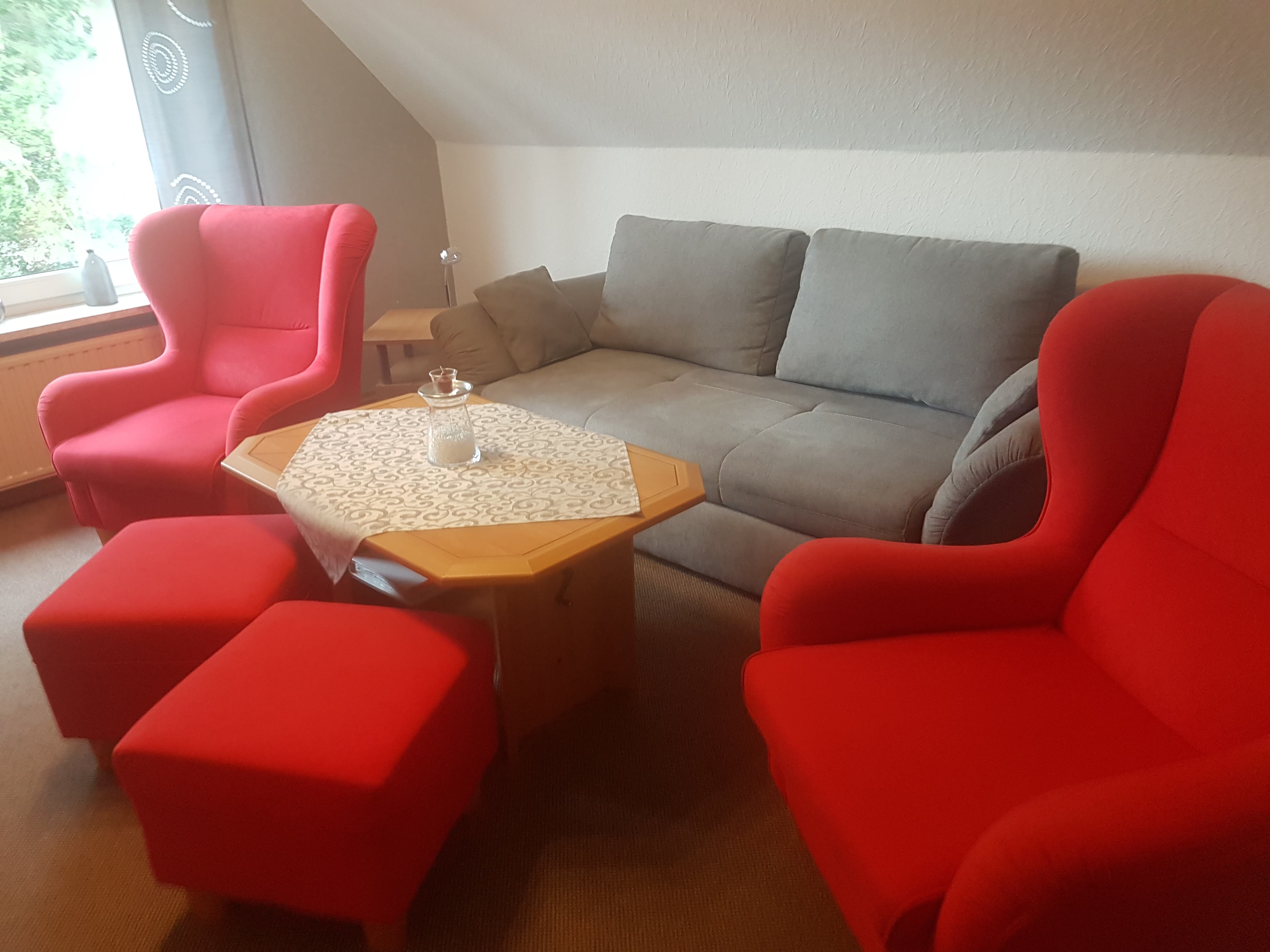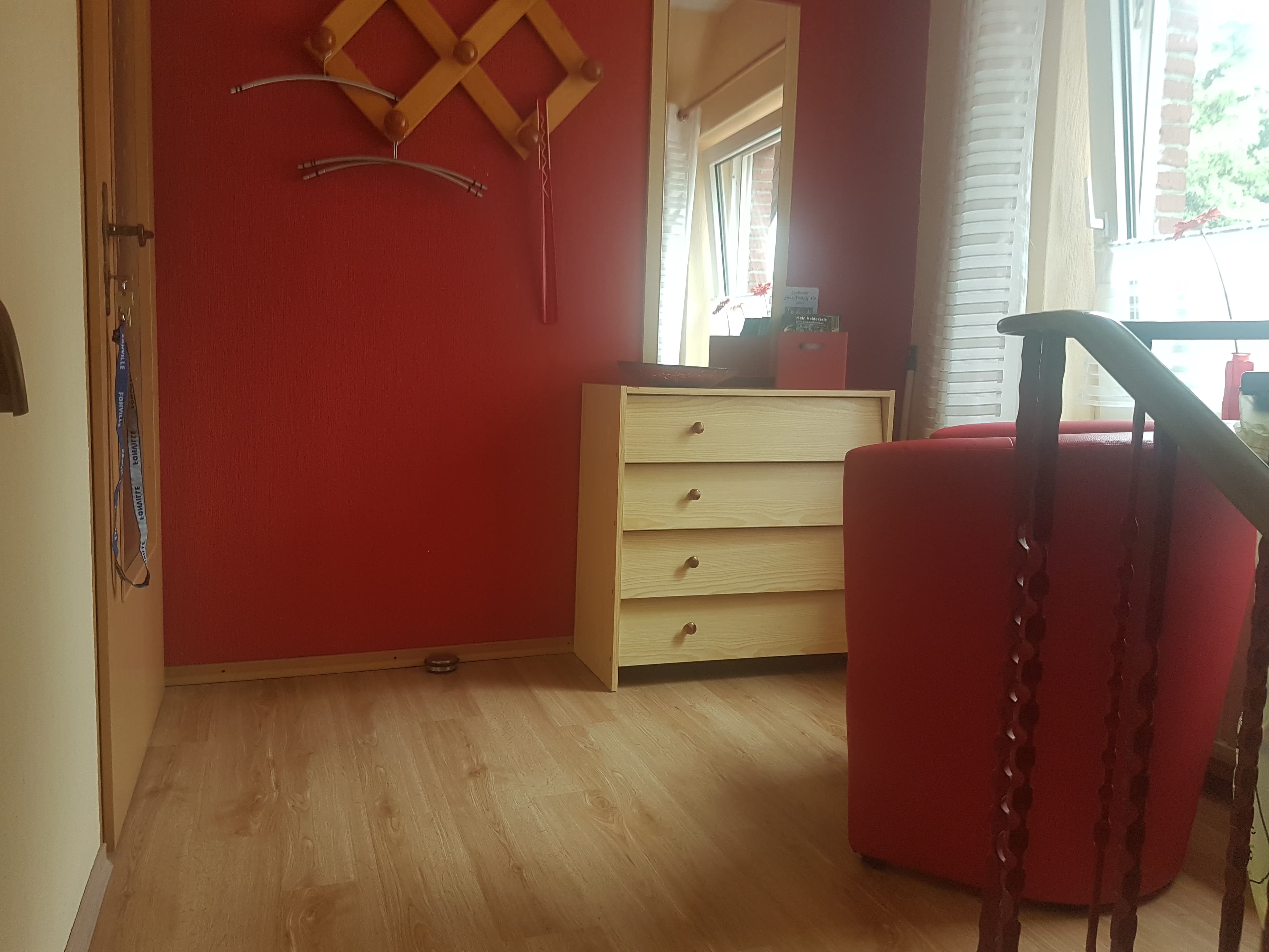 Ferienwohnung im Obergeschoss, ca. 60qm groß; 1 Wohn-Schlafzimmer, 1 Schlafzimmer mit Doppel-und Einzelbett, Küche und Vollbad mit Duschvorrichtung. Gartenhaus mit Grillmöglichkeit, Autostellplatz, Fahrradverleih möglich, Sat TV.