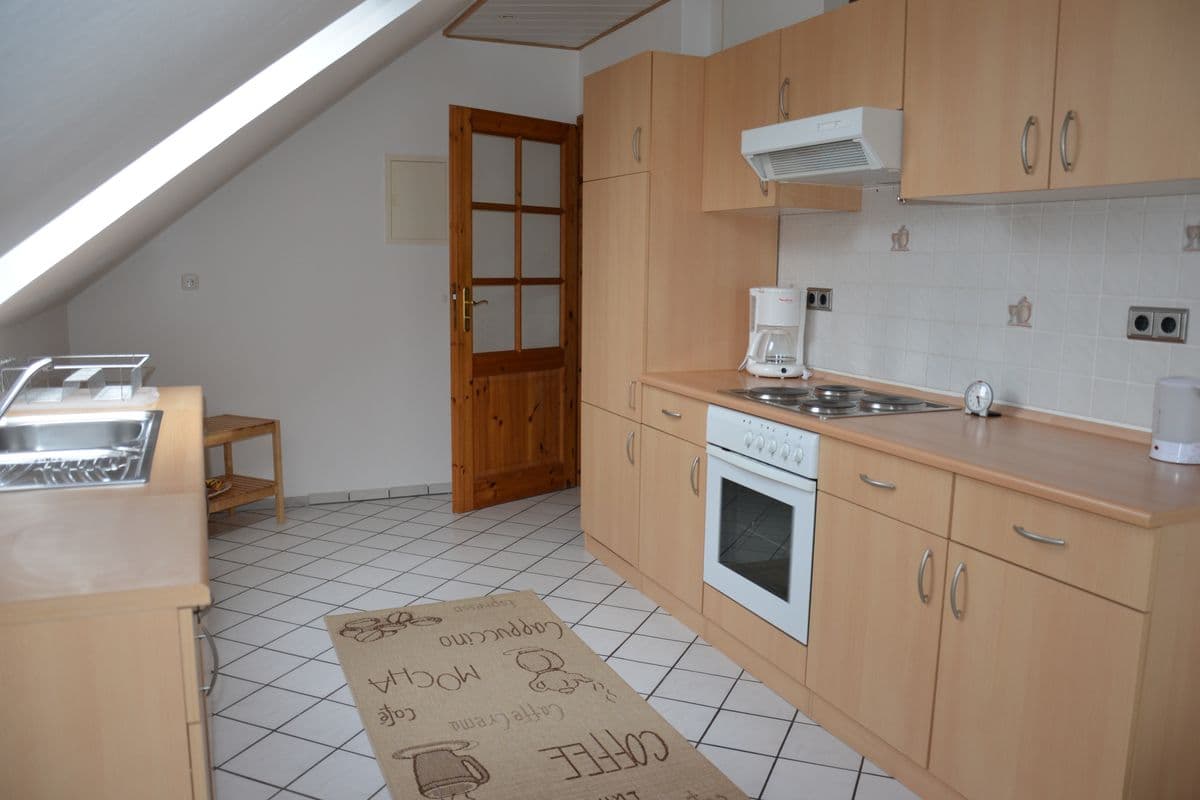 In der Ferienwohnung verpflegen Sie sich selbst. Im Ort ist fußläufig ein Supermarkt erreichbar.
