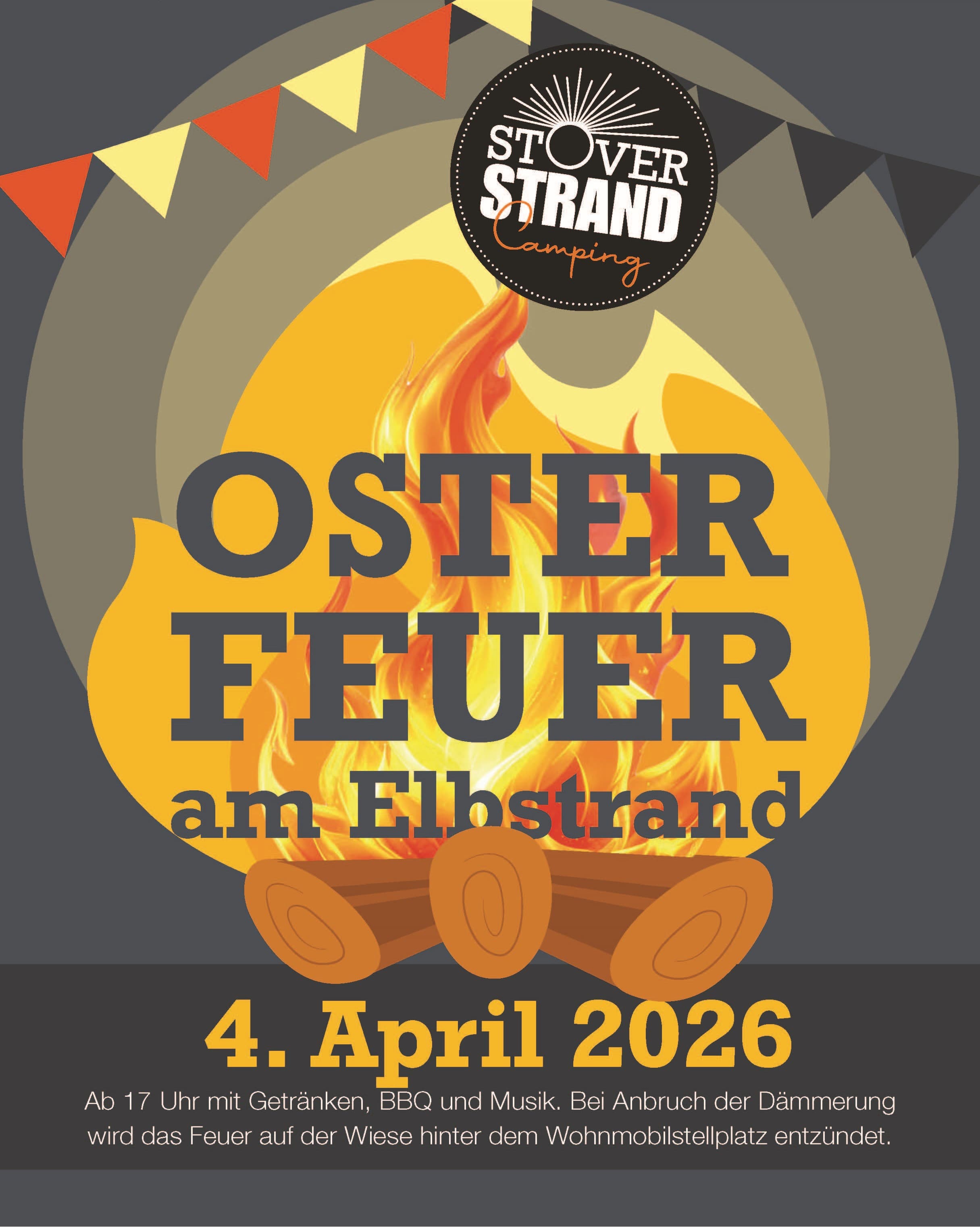 Drage-Ostern ist bei Stover Strand Camping einiges los! Unser Osterfeuer am 04. April solltest du nicht verpassen. Das Stover Strand Team begrüßt euch ab 17 Uhr mit kühlen Getränken und leckerem BBQ auf der Wiese hinter dem Wohnmobilstellplatz. Musik gibt's natürlich auch dazu – das wird ein stimmungsvol…