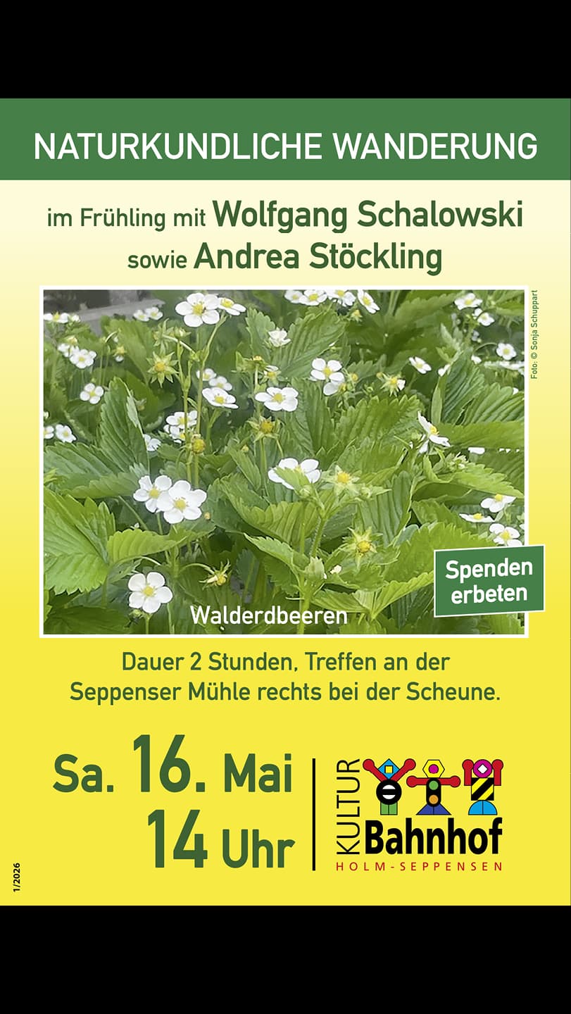 Buchholz in der Nordheide-Naturkundliche Wanderung im Frühling mit Wolfgang Schalowski und Andrea Stöckling Dauer: 2 Stunden Treffen an der Seppenser Mühle rechts bei der Scheune
