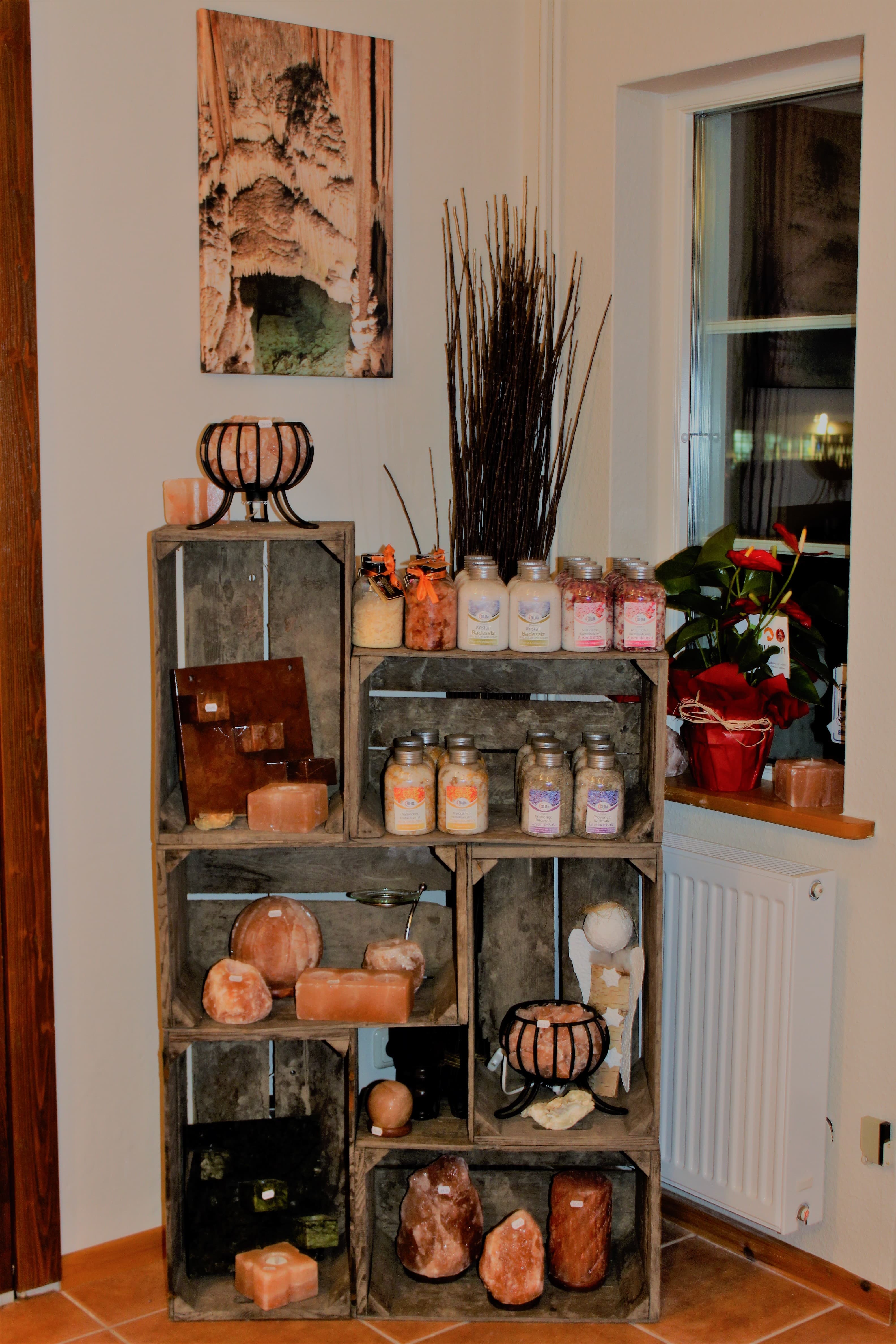 Kommen Sie zu uns und entspannen sich z.B. 45 Minuten in der Salzgrotte. Hören dort entspannende Musik, das leise Plätschern des Gradierwerkes und atmen dabei tief durch. Nutzen Sie unseren Soleraum, inhalieren 20 Minuten im Salznebel bei leiser Hintergrundmusik. Ausserdem bieten wir auf unseren Brainlight- Massagesesseln Entspannung pur. Sie werden sehen, dass Sie sich danach entspannter und frischer fühlen werden! Unabhängig von den Anwendungen gibt es noch ein kleines ''französisches Bistro'', welches zum Mittag- und Abendessen einläd. Wir bieten Ihnen Flammkuchen, Suppe je nach Tagesangebot! Verschiedene warme und kalte Getränke. Franz. Wein und Sekt steht ebenfalls bereit. Auch unser Verkaufsraum biete schöne Produkte aus Salz (Lampen, Teelichter, Salzmühlen, Badesalzen, Salzbonbons, Kräutern, natürlichen Duftölen, Brunnen, Tees, Gutscheine, 10er Karten, usw.