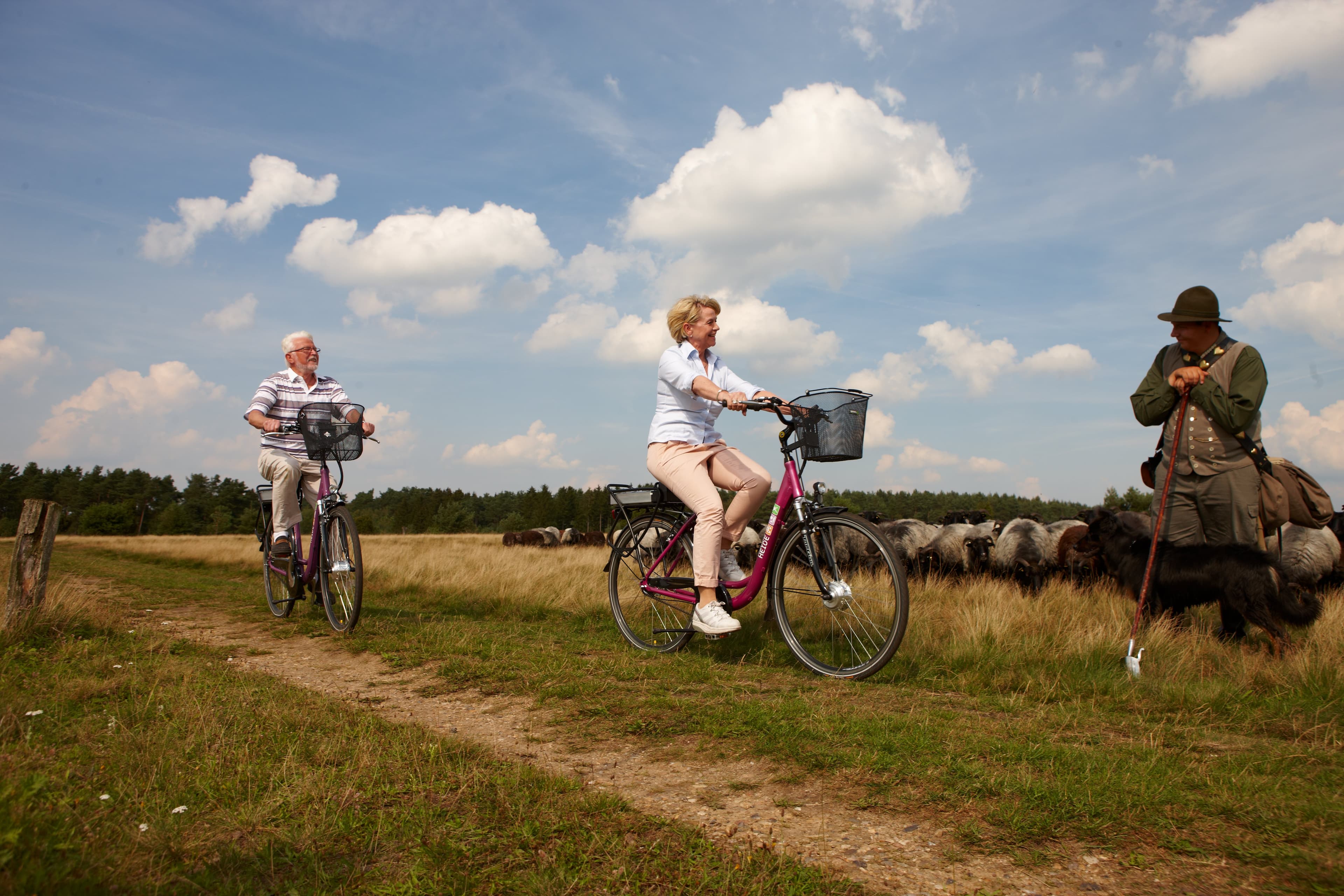 Weiter geht es entlang von historischen Bienenzäunen und Schafställen und mit etwas Glück treffen Sie einen Schäfer mit seiner Heidschnuckenherde. Dann erreichen Sie das historische Museumsdorf Wilsede, den Zentralort des Naturschutzgebietes Lüneburger Heide. Er ist nur per Fahrrad, Kutsche oder zu Fuß zu erreichen und konnte sich so den Charme vergangener Zeiten bewahren.