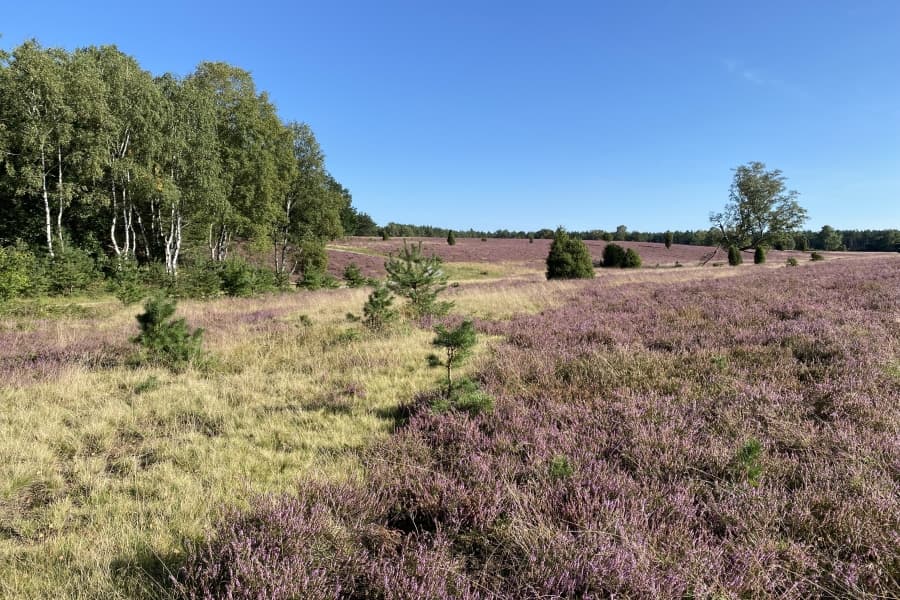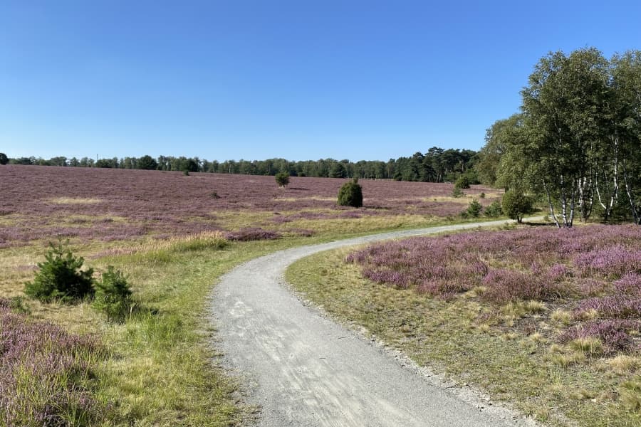 Der Weg führt Sie durch zahlreiche Heideflächen und an ehemaligen Kieselgur-Abbaugebieten vorbei.