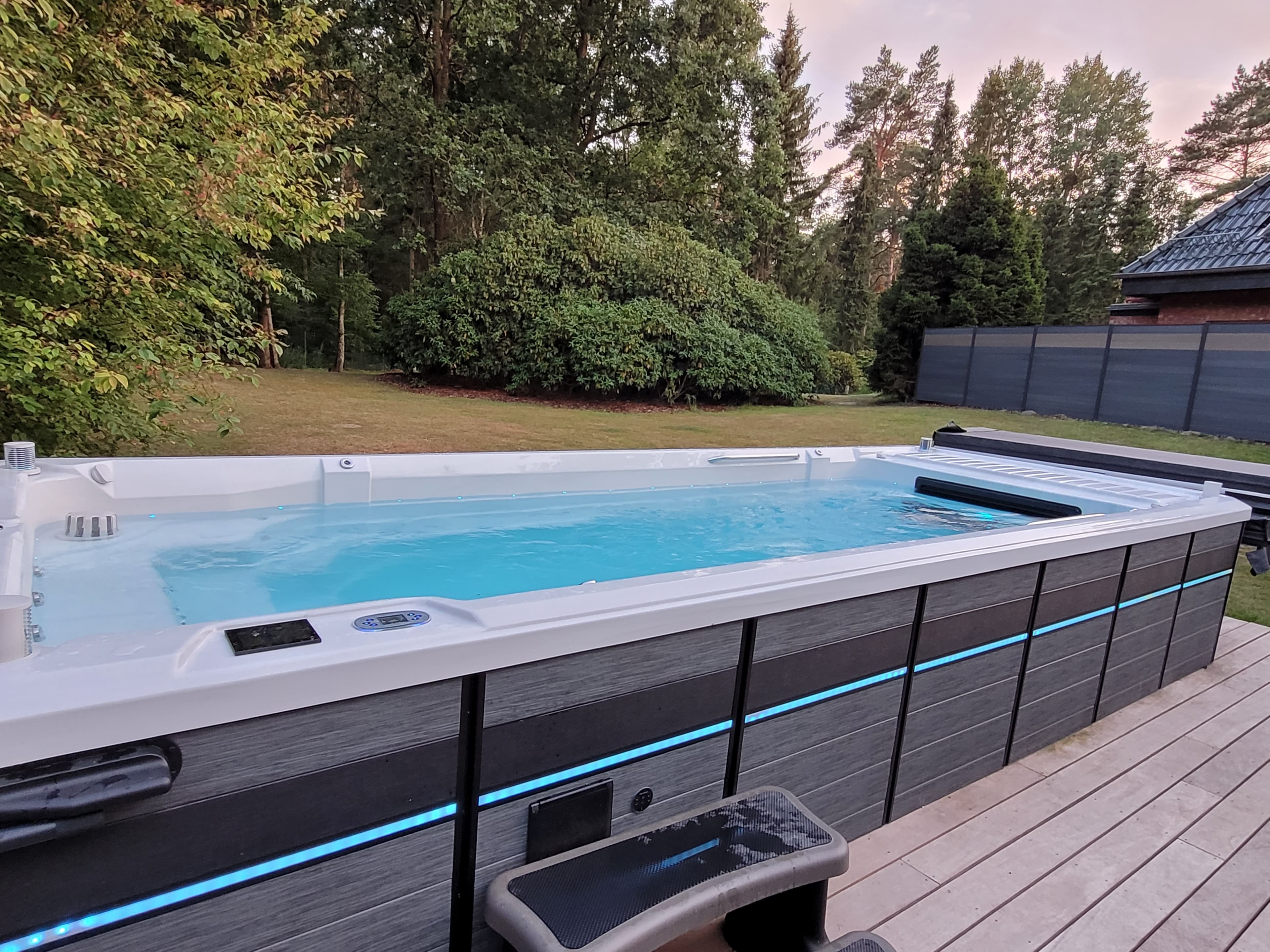 Außerdem einen Luxus Whirlpool beheizt nur für Sie ganz allein. Im Royal Bungalow und im Royal House zusätzlich einen Schwimm-Spa als Privat Pool mit Gegenstromanlage.
