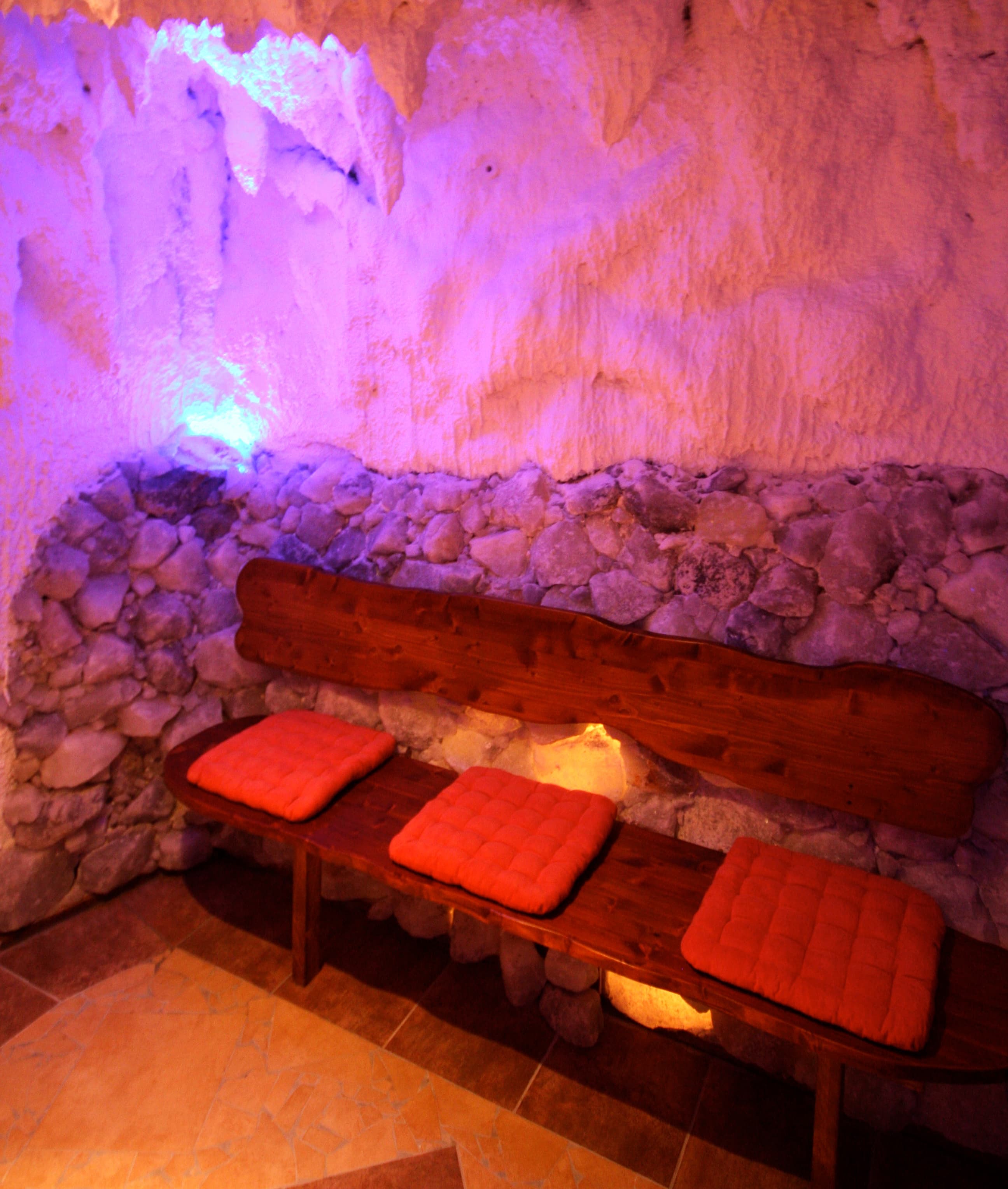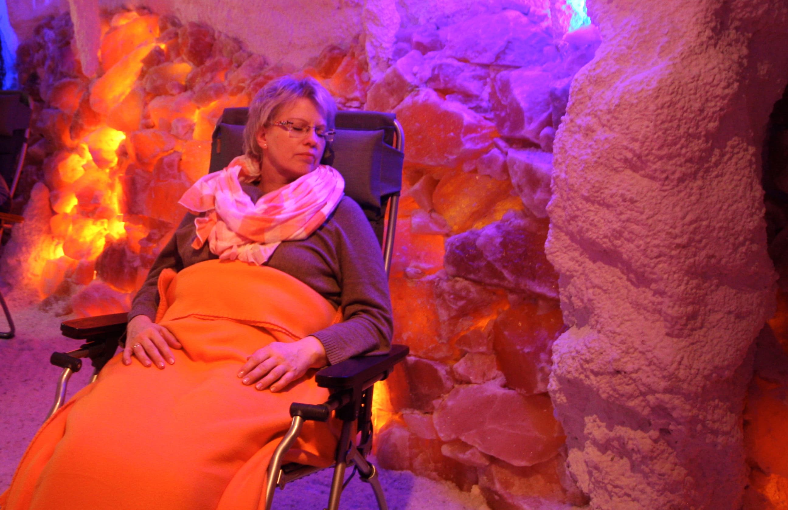 Verwöhnen Sie sich und fühlen Sie sich wie in einem kleinen Urlaub. Die Wände unserer Salzgrotte sind aus Natursalzstein gebaubt, dessen natürliche Farbe und Struktur, unsere Salzgrotte einzigartig macht. Bei angenehmer Raumtemperatur inhalieren Sie bei ca. 50% Luftfeuchtigkeit das gesunde Meeresmikroklima.Unsere Salzgrotte betreten Sie mit Ihrer normalen Bekleidung und Decke aus Ihrem Zimmer. Um das Salz absolut rein zu halten, finden Sie Kunststoffüberzieher für Ihre Schuhe vor der Grotte. Anschließend lehnen Sie sich so lange wie Sie mögen, auf einer komfortablen Liege zurück und genießen das Salzklima – gedämmtes Licht und ruhige Musik sorgen dabei für eine entspannende Atmosphäre.