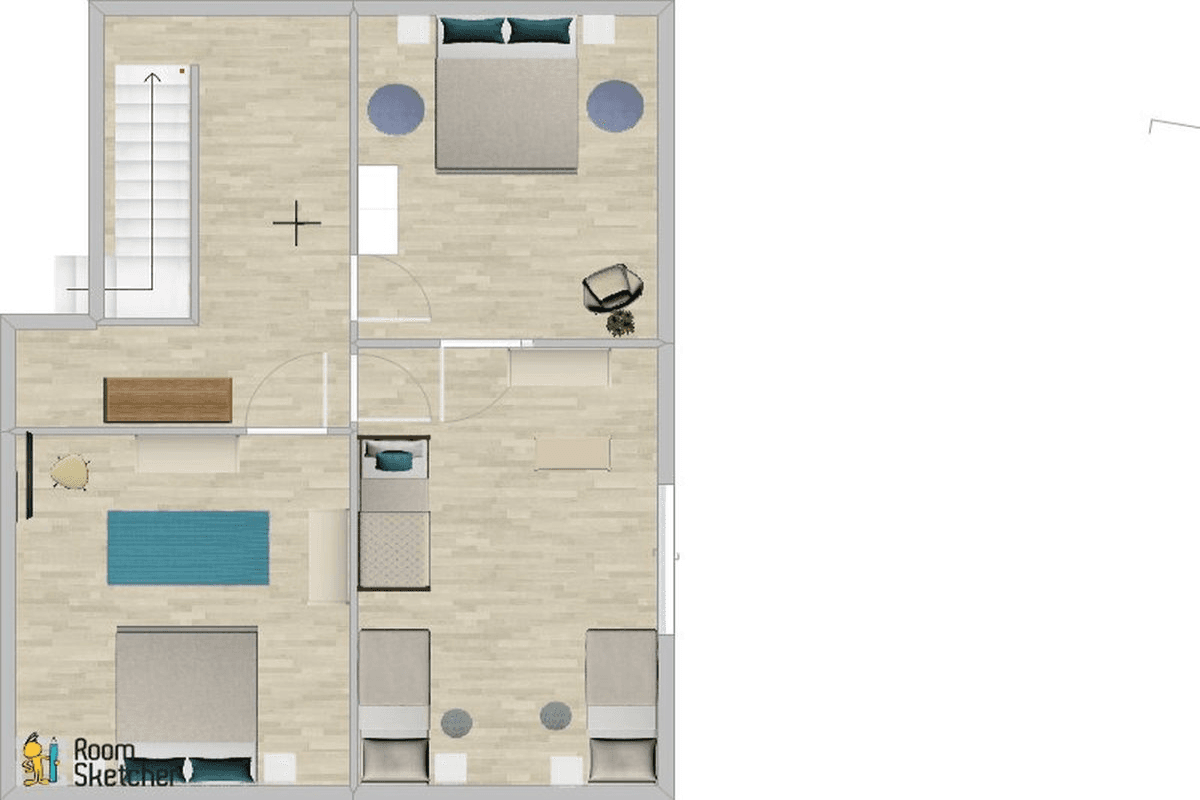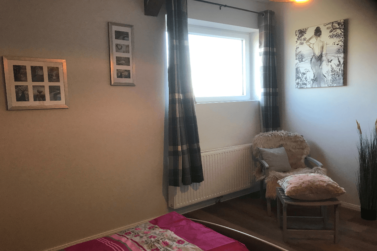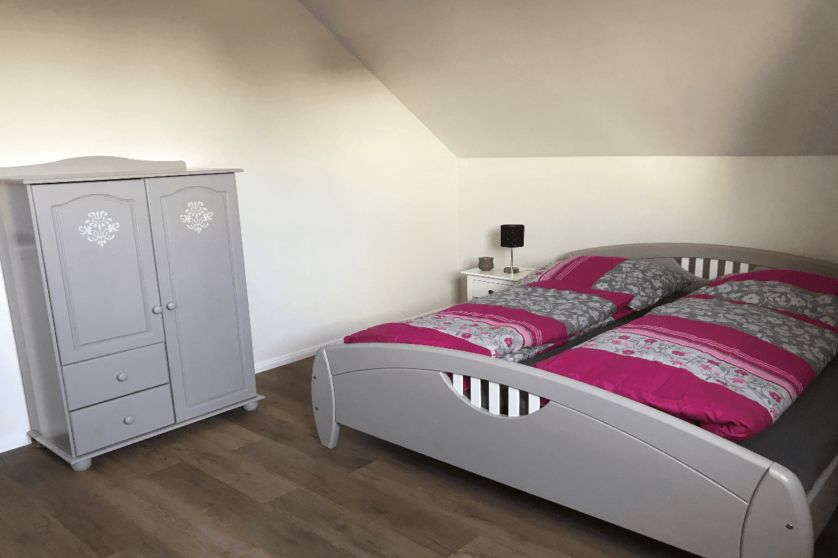 Unsere große Nichtraucher-Ferienwohnung ist für 8 Personen ausgestattet und verfügt über 3 separate Schlafzimmer. Die Wohnung ist über eine Außentreppe erreichbar und hat zusätzlich noch eine innen liegende Treppe. Sie ist hell und modern eingerichtet, das großzügige Wohnzimmer mit offener Wohnküche besticht durch eine große Fensterfront und einen 60 Zoll TV. Ein Wäschepaket ist auf Wunsch zubuchbar. Haustiere sind nicht erlaubt.