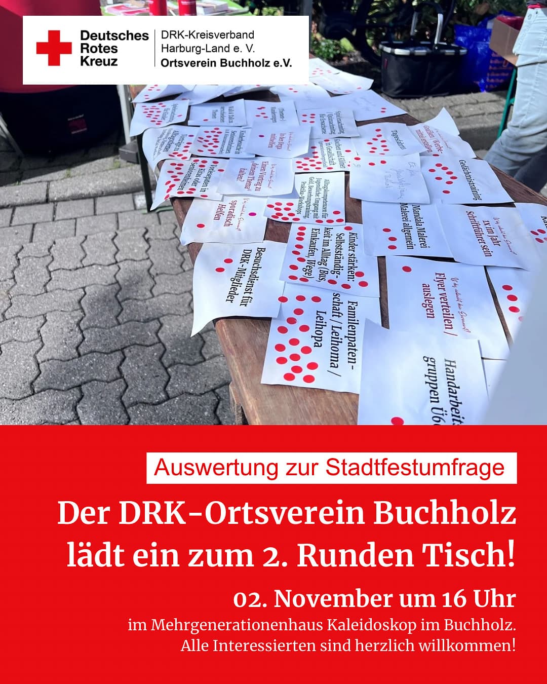 - Runder Tisch „Ehrenamt in Buchholz“Buchholz in der NordheideTreffen zur Planung neuer Ehrenamtsangebote und Auswertung der Bürgerumfrage Das Deutsche Rote Kreuz Buchholz lädt alle Interessierten herzlich zu einem offenen Treffen ein. Gemeinsam möchten wir überlegen, welche Aktivitäten künftig angeboten werden können und wie wir neue freiwillige Helferinnen …