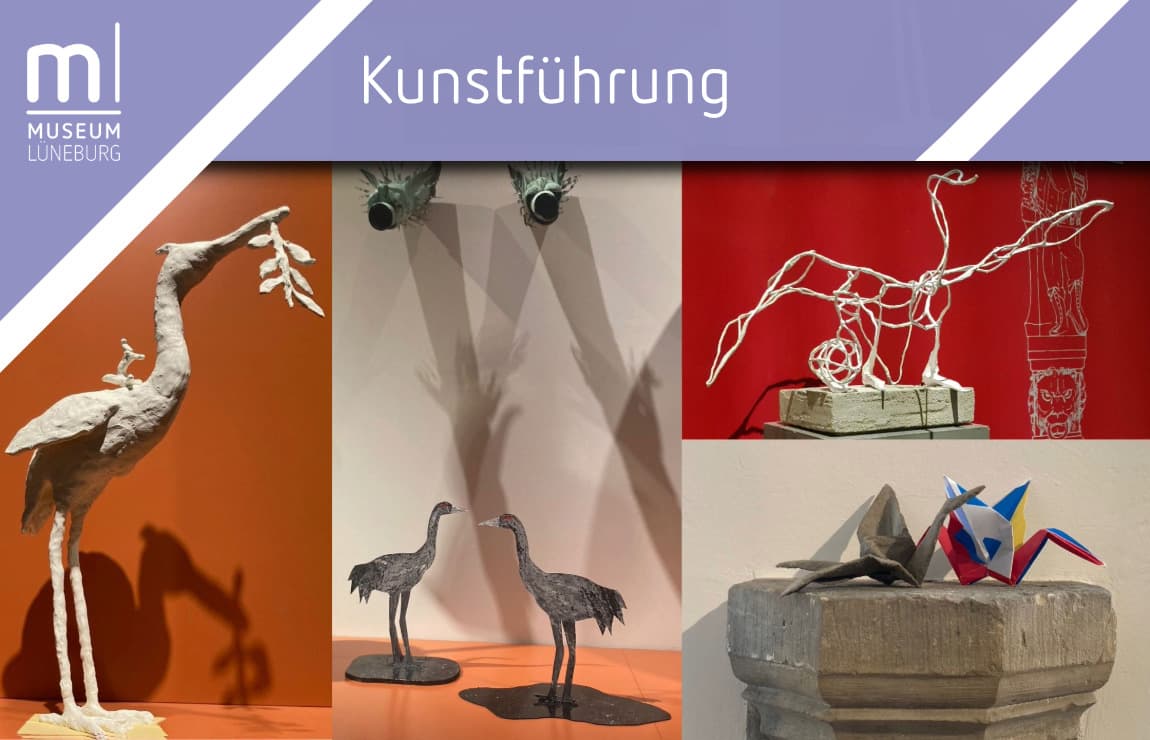 - Führung: 1000 Kraniche für den FriedenLüneburgRundgang mit den Künstlerinnen Ursula Blancke-Dau, Nina Heinzel, Katharina Kühne und Jessica Kulp Die Aktion „1000 Kraniche für den Frieden“ hat viele Spuren im Museum hinterlassen: gefaltete Kraniche von Lüneburger:innen und Kranich-Skulpturen, die eigens von den Künstlerinnen Nina Heinzel, Ursula…